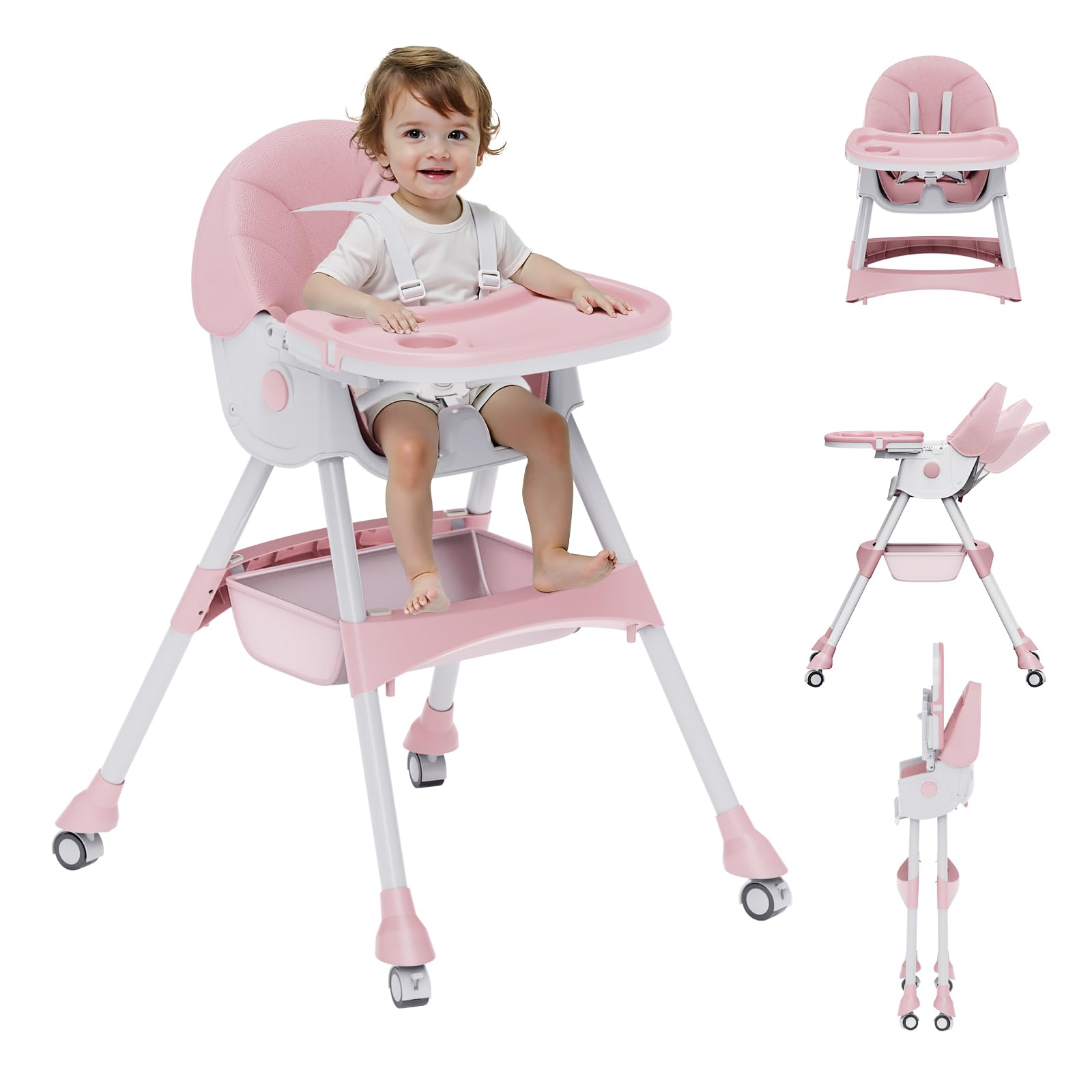 High Chairs for Babies and Toddlers, 4 in 1 Convertible Baby High Chair, Portable High Chair for Travel with Adjustable Height and Back, Foldable|Baby & Toddler
