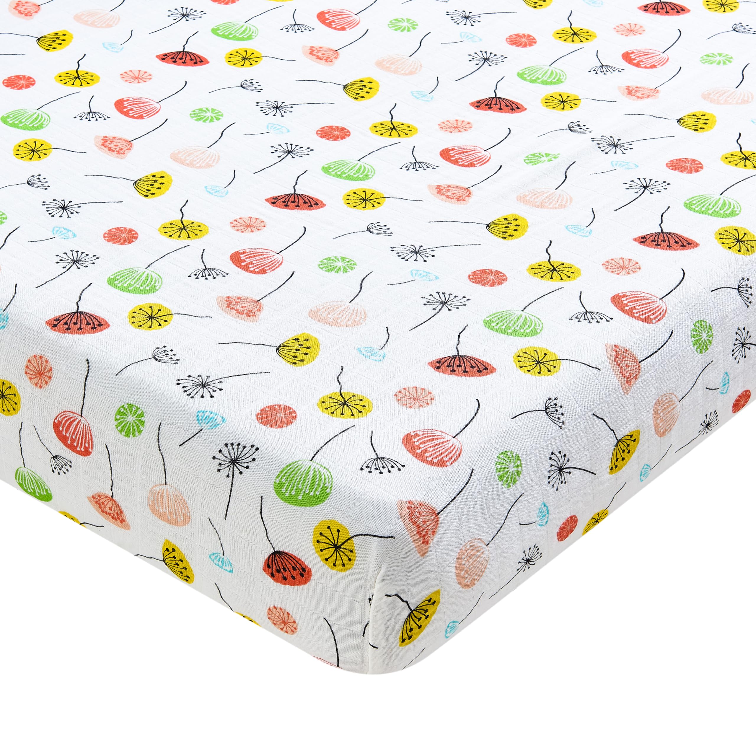 Margaux & May Organic Muslin Cotton Baby Crib Sheet, Dandelion Print, Fitted, Breathable, Toddler Bedding, 52 x 28, Deep Pocket, Organic Crib Sheets|Baby & Toddler