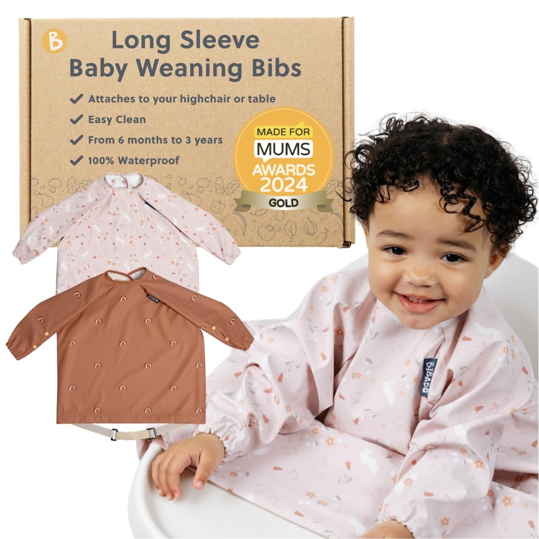 BIBaDO - Long Sleeve Baby Bibs - Babies & Toddlers 6-36 Months - Coverall Baby Led Weaning Bib - Easy Wipe, Soft & Waterproof|Baby & Toddler