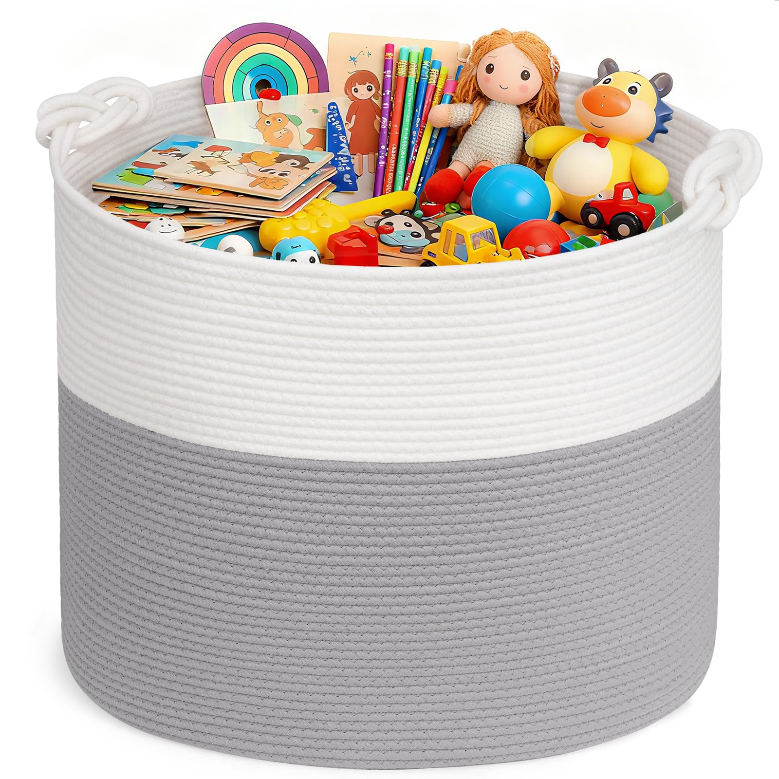 Goodpick 17"x16" Toy Storage for Kids, Home Décor Living Room, Baby Basket for Nursery Playroom, Soft Woven Cotton Rope Baskets for Blankets Pillows|Baby & Toddler