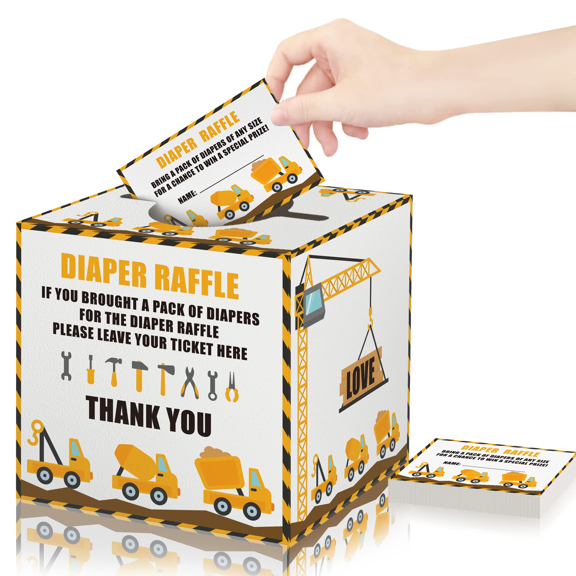 Excavator Diaper Raffle Tickets with Box, 1Diaper Raffle Box and 50Diaper Raffle Card,Diaper Raffle Tickets for Baby Shower,Diaper Party Raffle Insert|Baby & Toddler