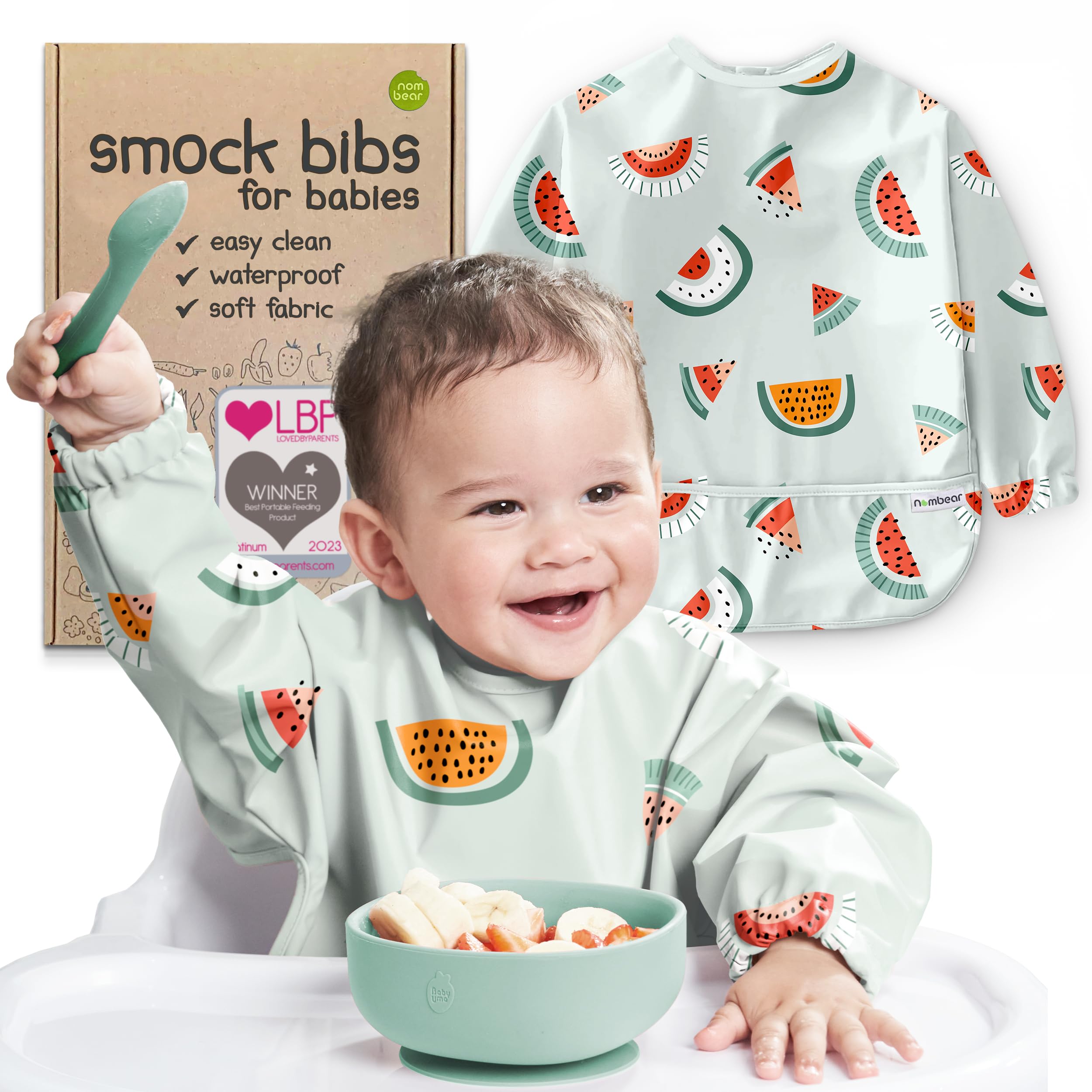 Nombear Waterproof Smock Baby Bibs for Eating (Boy or Girl 6-24 Months) - Toddler Long Sleeve Bib for Baby Led Weaning|Baby & Toddler