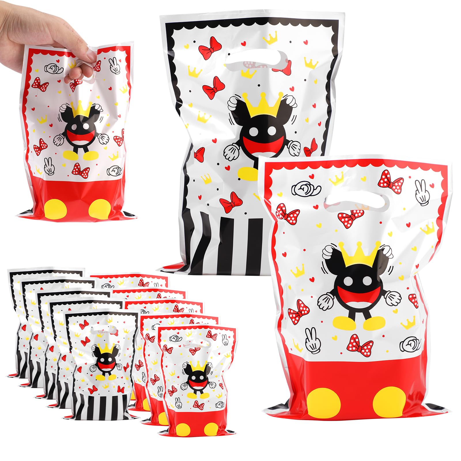 Tinoaly 100pcs Mouse Party Bags, Plastic Goodie Bag Gift Stuffers Cookie Chocolate Candy Snack Bags for Cartoon Mouse Theme Kids Birthday Party Favor|Baby & Toddler