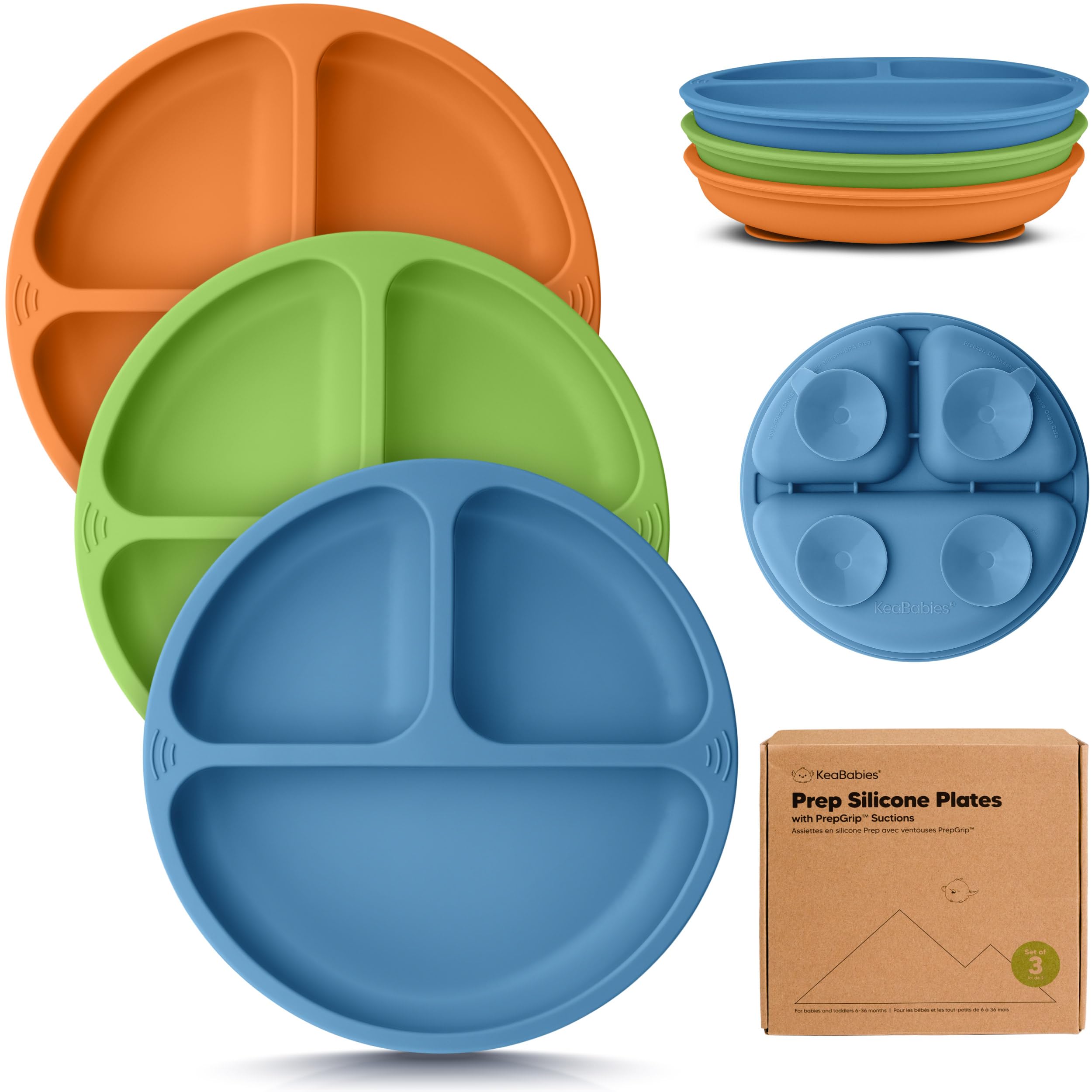 KeaBabies Suction Plates for Baby, Toddler - 3-Pack 100% Silicone Toddler Plates with Suction, Divided, BPA-Free Baby Led Weaning Essentials for Kids,|Baby & Toddler