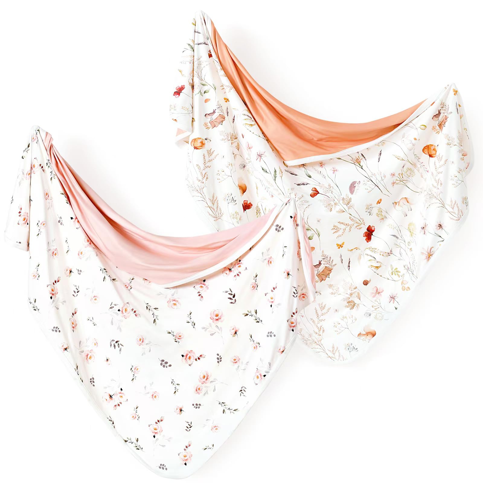 GRSSDER Baby Swaddle Blanket 2 Pack, Super Soft Jersey Knit Quilt Blankets for Baby Girls, Reversible Double Layer Receiving Blankets 34 x 44 Extra|Baby & Toddler