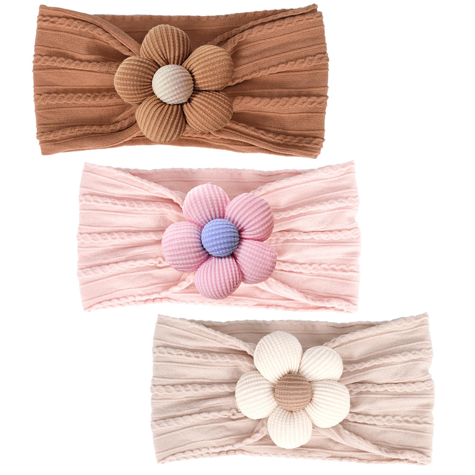MIUXUESO 3 Pcs Baby Flower Headbands Baby Girls Nylon Headband Soft Hairbands Hair Accessories for Newborn Infant Toddler Kids (Beige,Pink,Brown)|Baby & Toddler