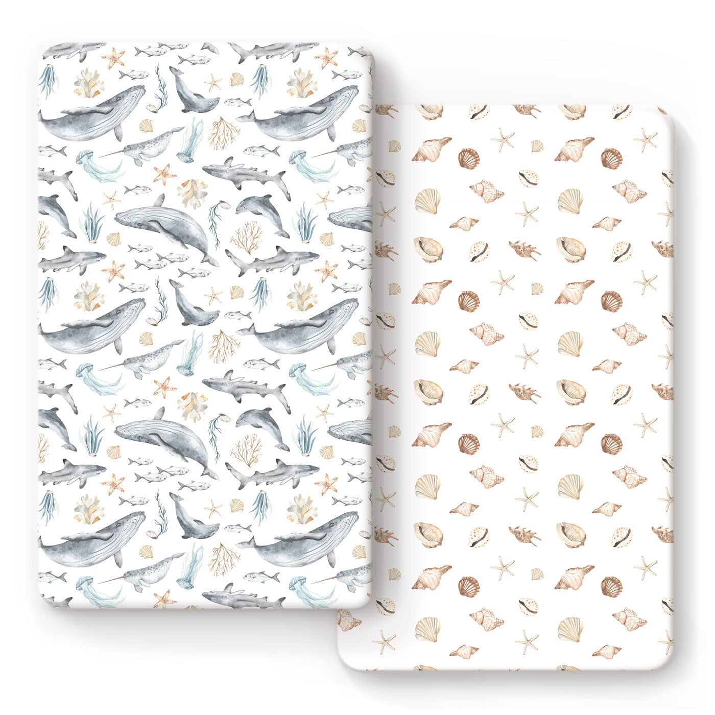 GRSSDER Stretchy Ultra Soft Jersey Knit Fitted Crib Sheets Set 2 Pack, Fit All Standard Crib Mattresses Safe and Snug, Beautiful Marine Organism for|Baby & Toddler