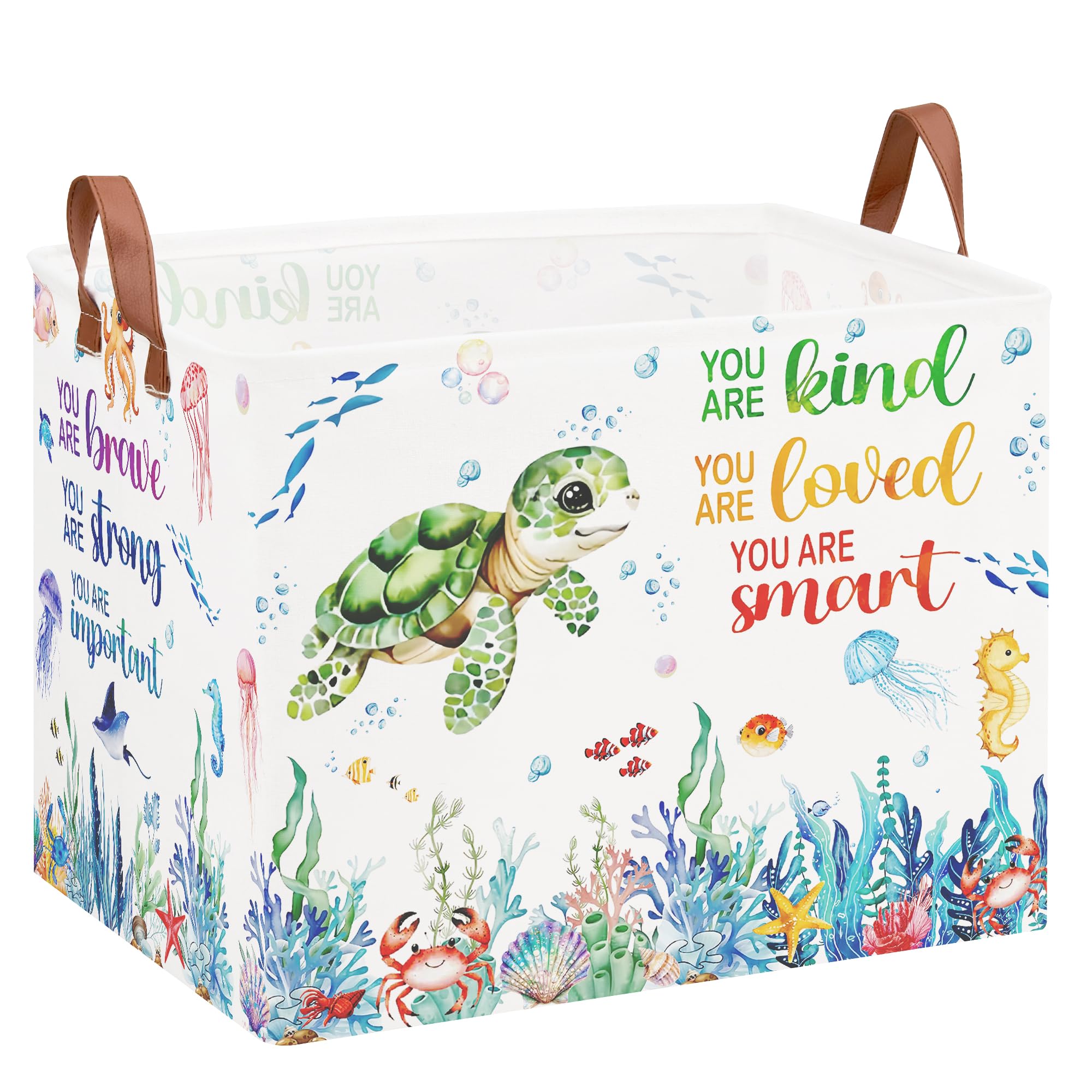 XHWZOF Sea Turtle Toy Basket, Beach Pool Toy Basket Ocean Nursery Decor Laundry Hamper Fish Towel Storage Bin Under The Sea Nursery Decor Box|Baby & Toddler