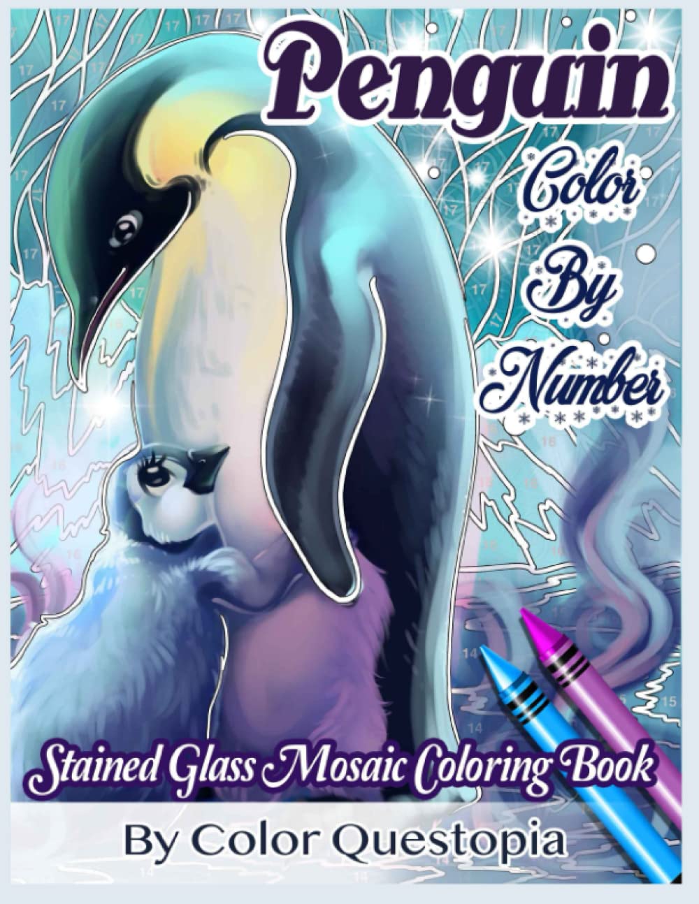 Penguin Color By Number Stained Glass Mosaic Coloring Book: Cute Penguin Gifts - Color By Number Coloring Books For Adults For Stress Relief and|Books