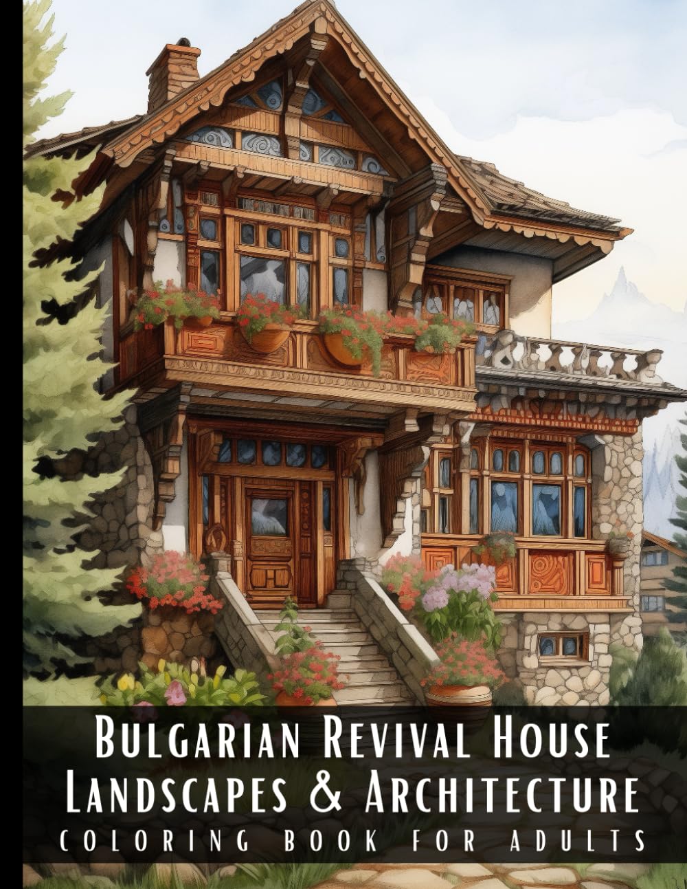 Bulgarian Revival House Landscapes & Architecture Coloring Book for Adults: Beautiful Nature Landscapes Sceneries and Foreign Buildings Coloring Book|Books