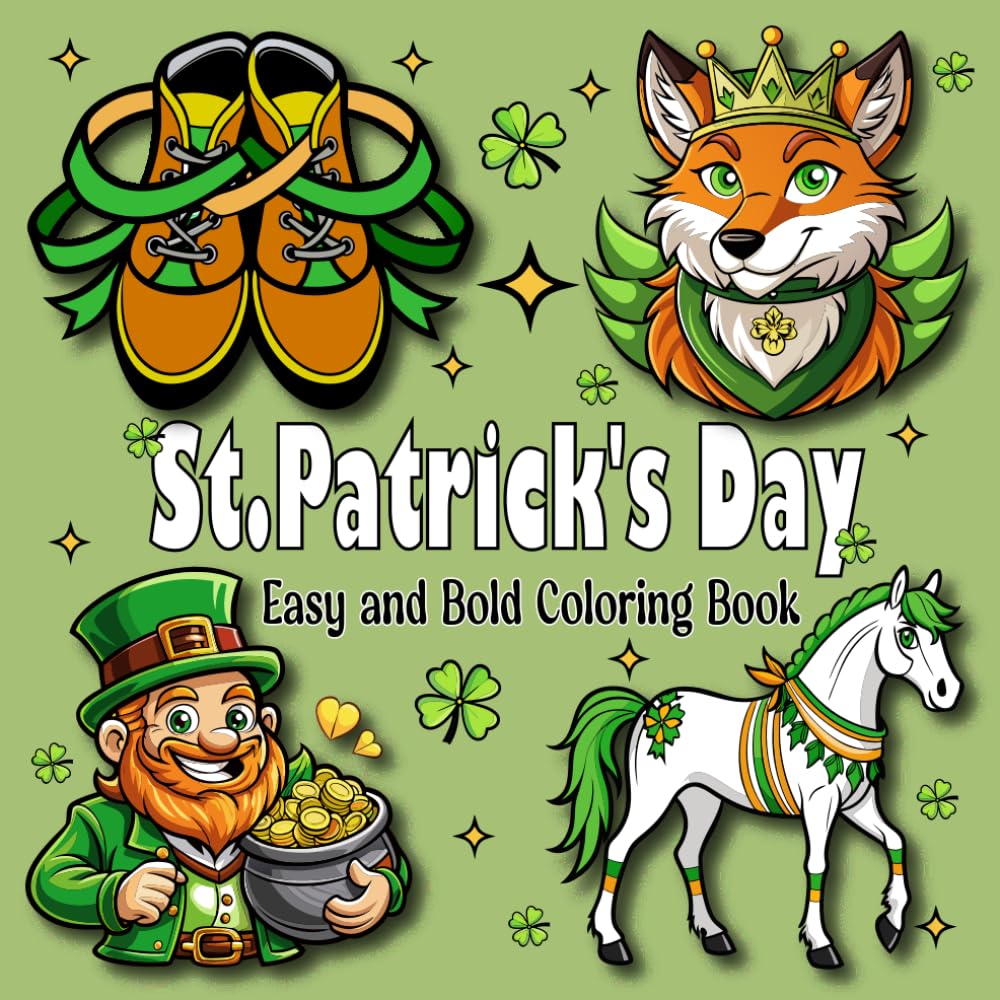 St. Patrick's Day Coloring Book: Bold and Easy For Kids, Teens and Adults, Simple and Big Designs, Leprechauns, Lucky Clovers, Shamrocks, Rainbows, ..|Books