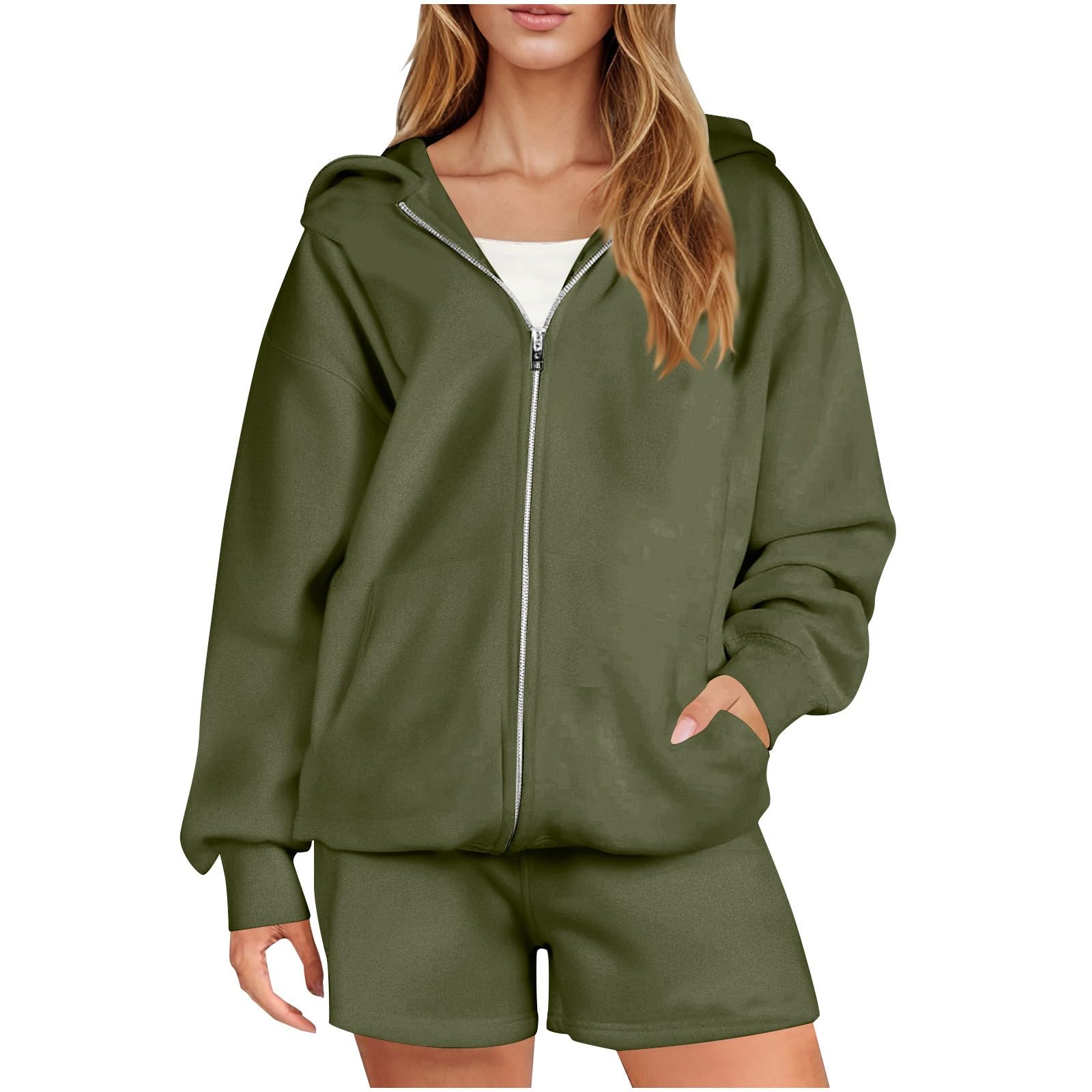 Track Suits for Women Set Oversized Zip Up Hoodie and Shorts Lounge Set Casual 2 Piece Outfits Sweatsuits|Clothing