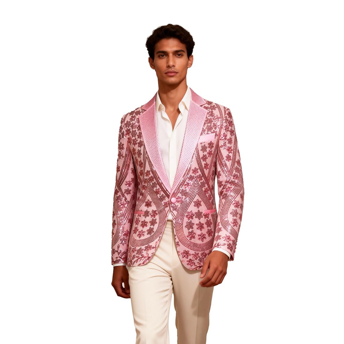 PYJTRL Men's Embroidered Sequin Floral Pattern Blazer Jacket with Rhinestone Notched Collar for Wedding Party Prom|Clothing