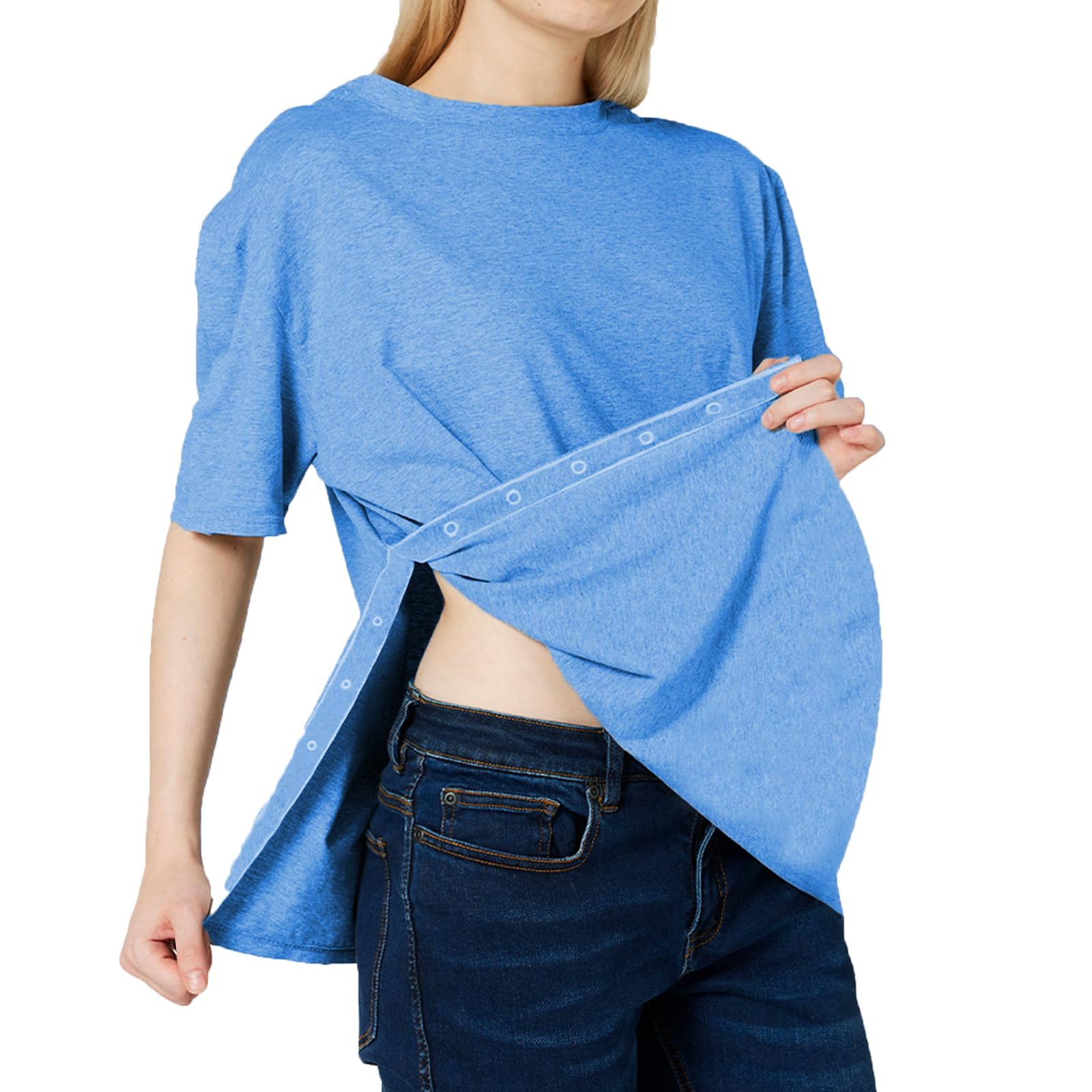 Fififlip Women's Post Shoulder Surgery Tear Away Shirt Short Sleeve Side Snap Chemo Port Postpartum Shirts Adaptive Clothing|Clothing