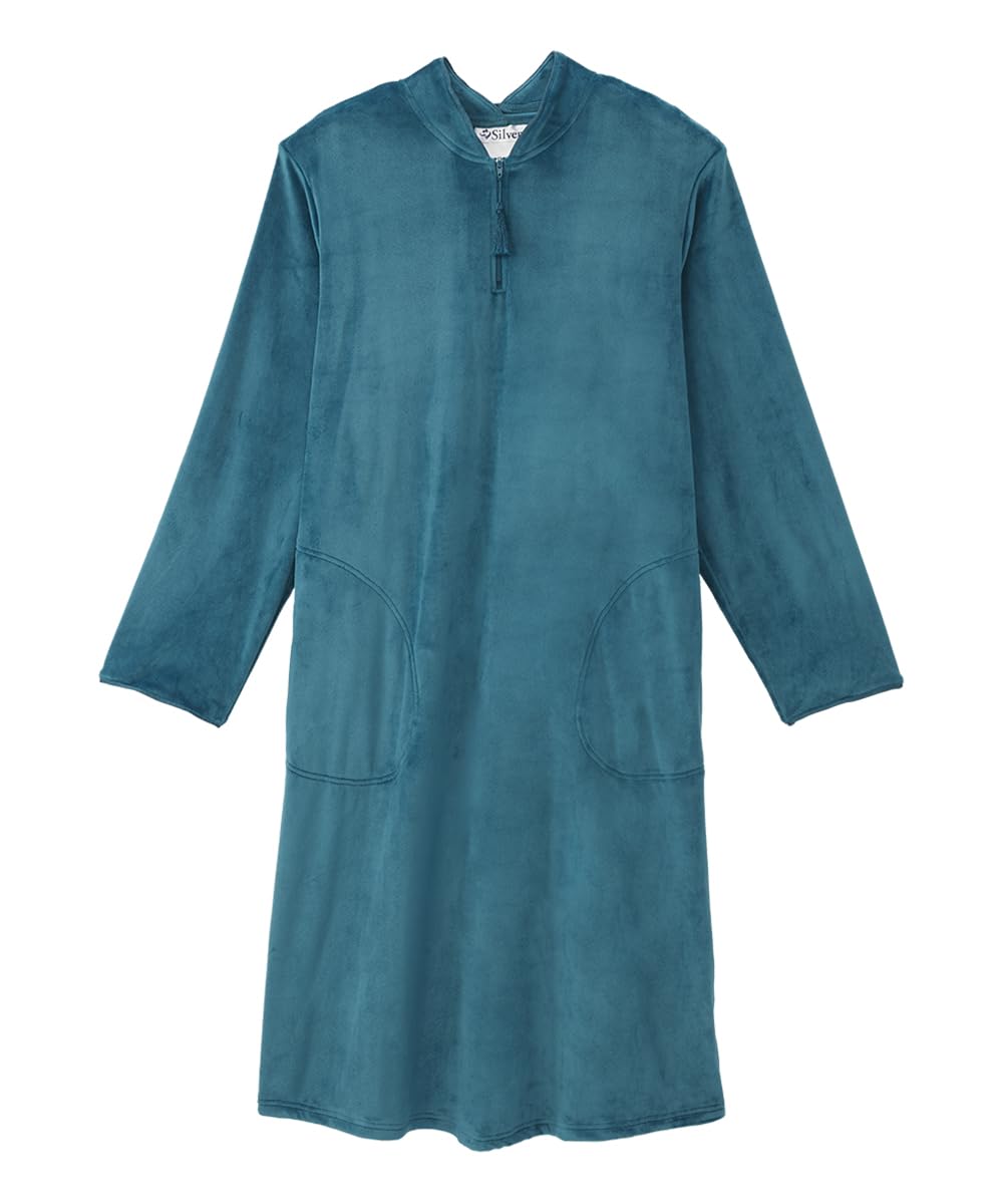 Women’s Open Back Adaptive Plush Nightgown With Zip Front|Clothing