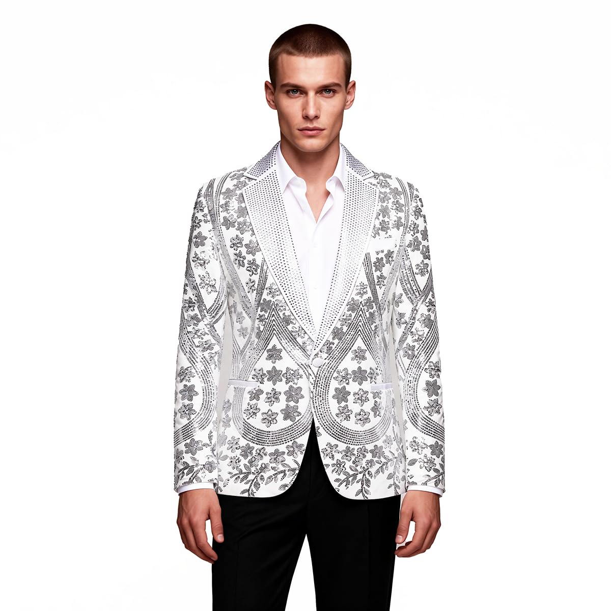 PYJTRL Men's Embroidered Sequin Floral Pattern Blazer Jacket with Rhinestone Notched Collar for Wedding Party Prom|Clothing