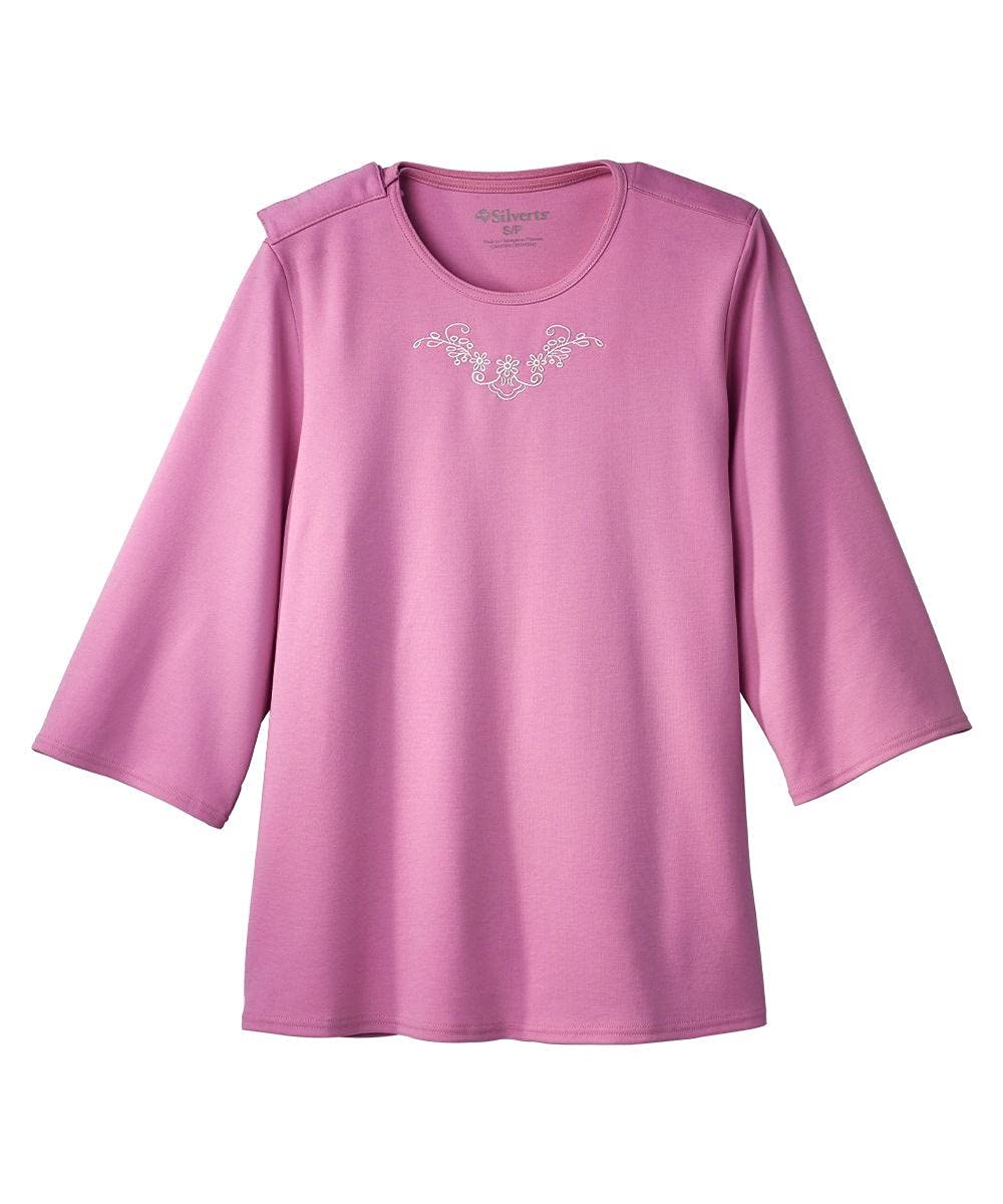 Women’s Open Back Adaptive Warm Winter Weight Top for Seniors - 3/4 Long Sleeve Scoop Shirt|Clothing