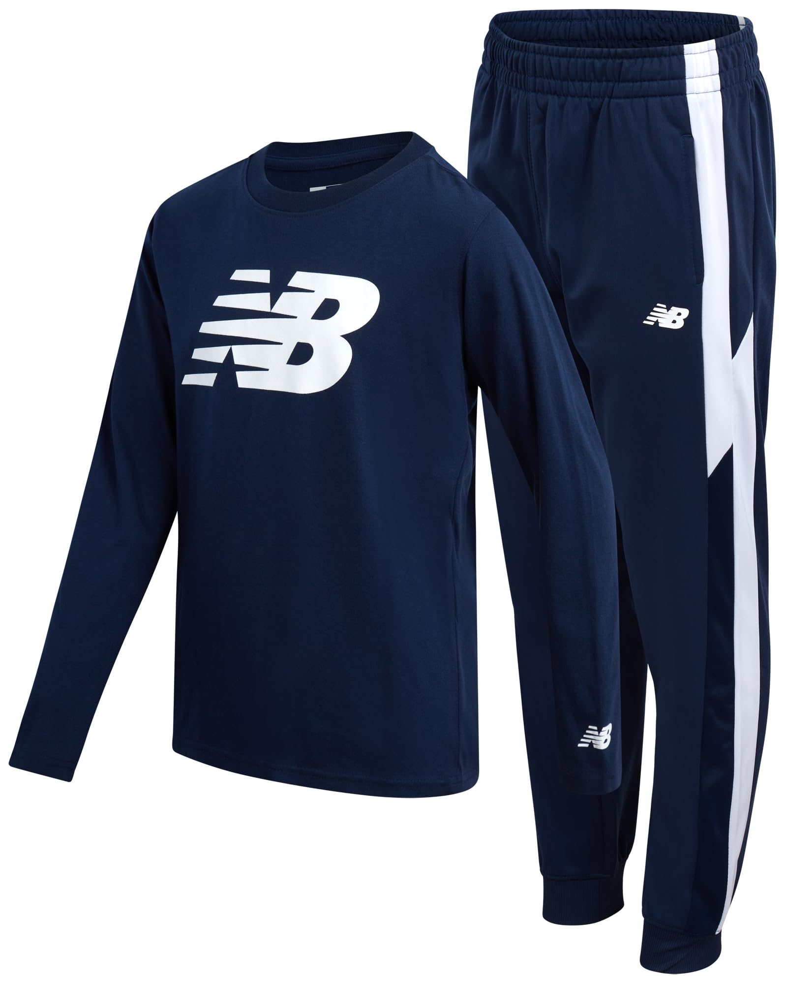 New Balance Boys Jogger Set - 2 Piece Athletic Jersey Graphic Long Sleeve Shirt and Tricot Jogger Sweatpants for Boys (8-16)|Clothing