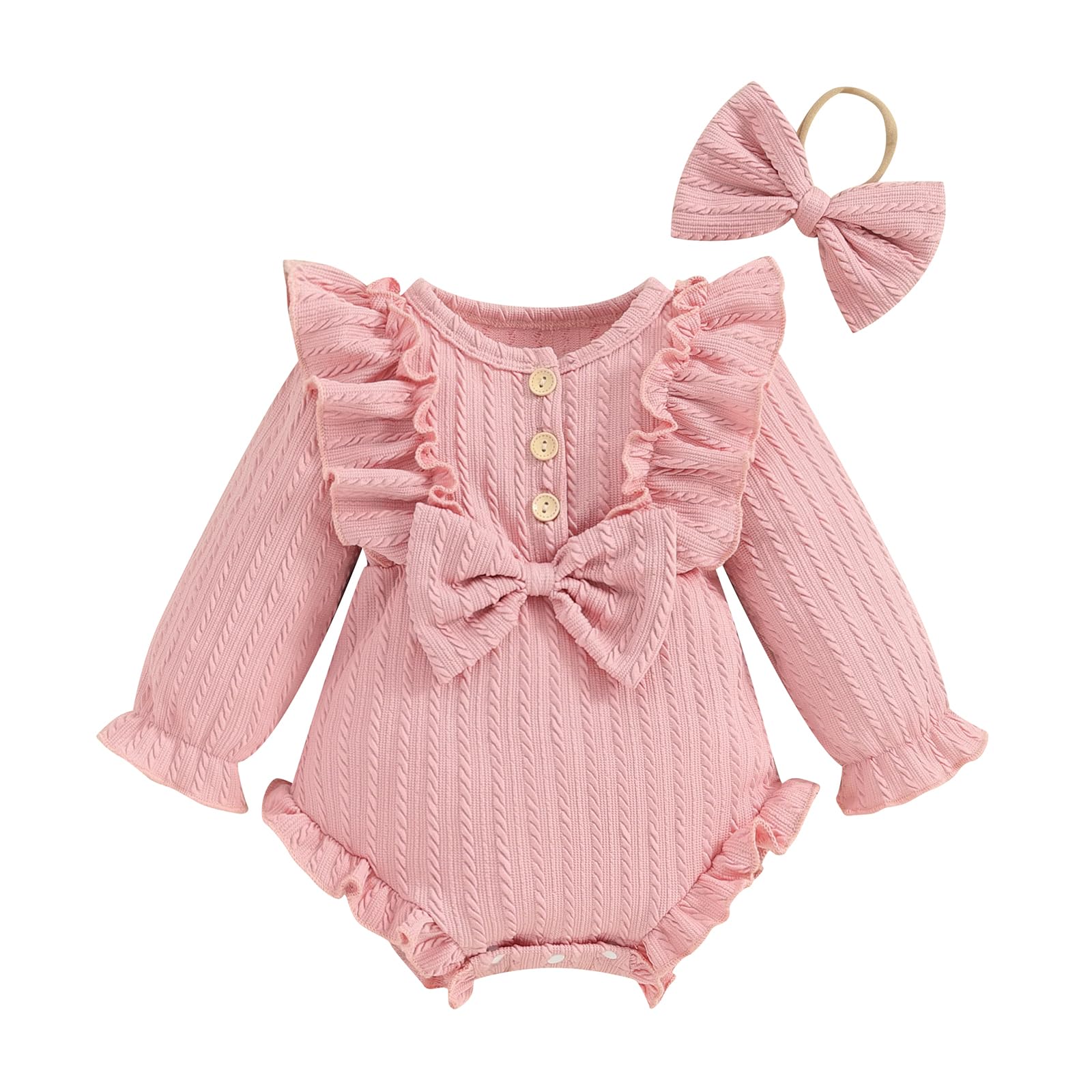 ZAXARRA Infant Baby Girls Fall Outfits Button Front Ruffle Long Sleeve One piece Rompers Cute Newborn Headband Clothing Sets|Clothing