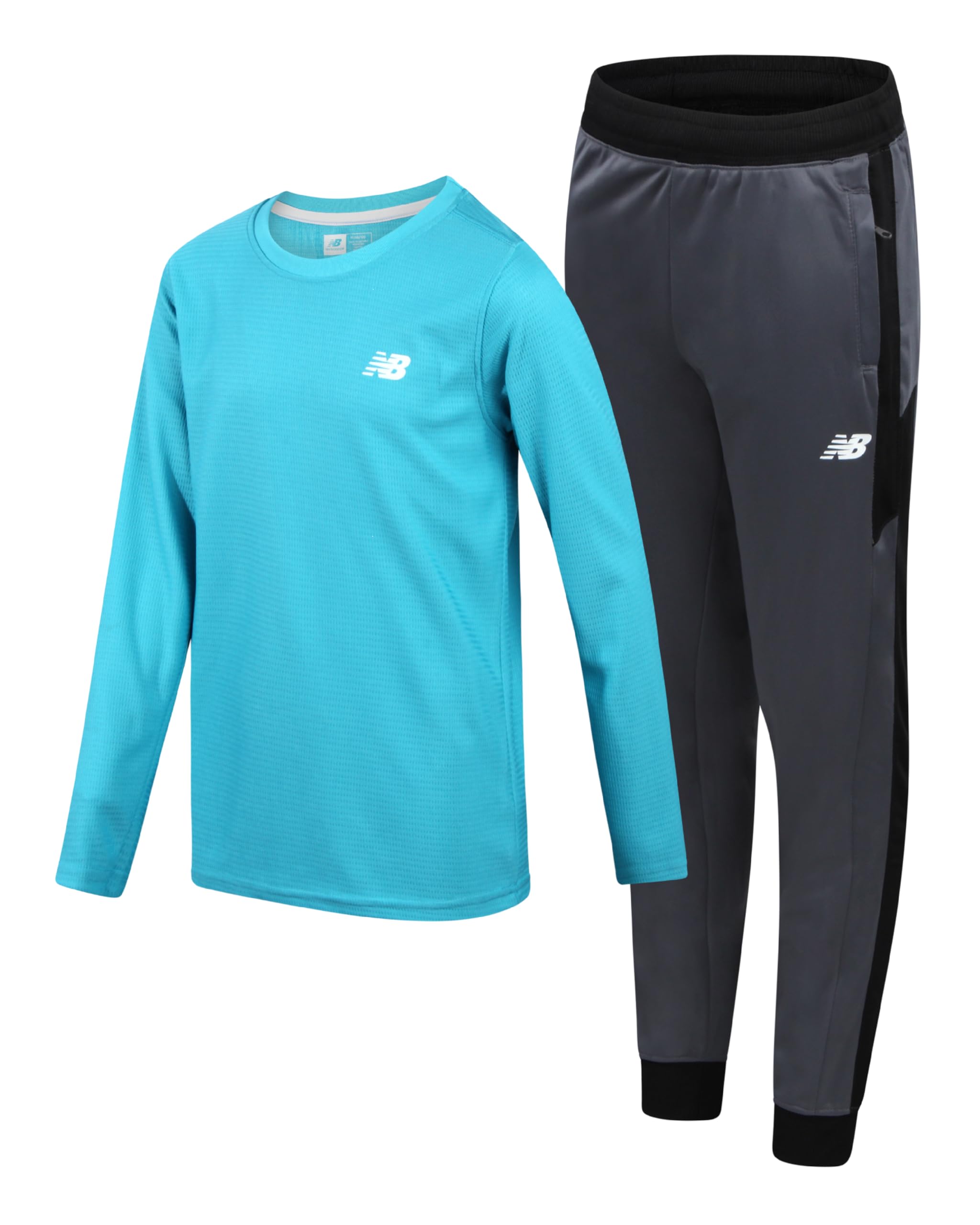New Balance Boys Jogger Set - 2 Piece Athletic Jersey Graphic Long Sleeve Shirt and Tricot Jogger Sweatpants for Boys (8-16)|Clothing
