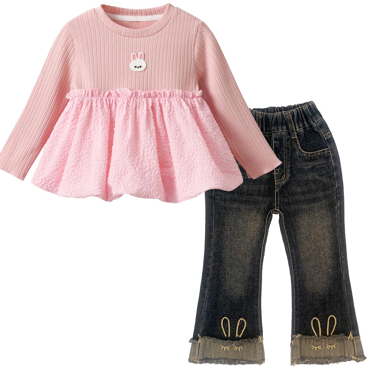 Mikrdoo Baby Toddler Girl Clothes Long Sleeve Ruffle Shirts Top Denim Bell Bottom Outfits Fall Winter Kids Clothing Sets|Clothing
