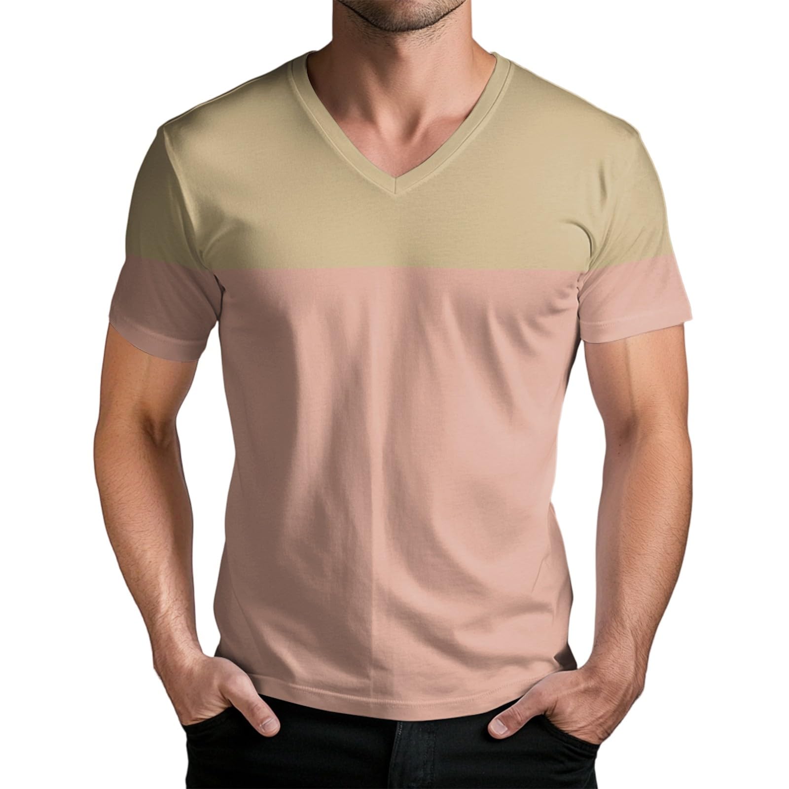 RTRDE Men's T Shirts Color Block Short Sleeve V Neck Soft Summer Fashion Tee Shirts, M-3XL|Clothing