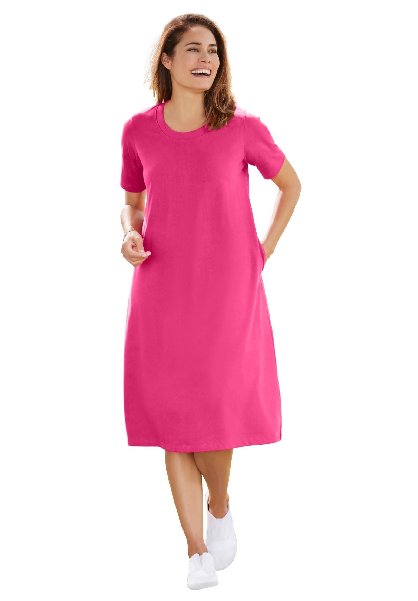 Woman Within Plus Size Perfect Short-Sleeve Crewneck Tee Dress|Clothing