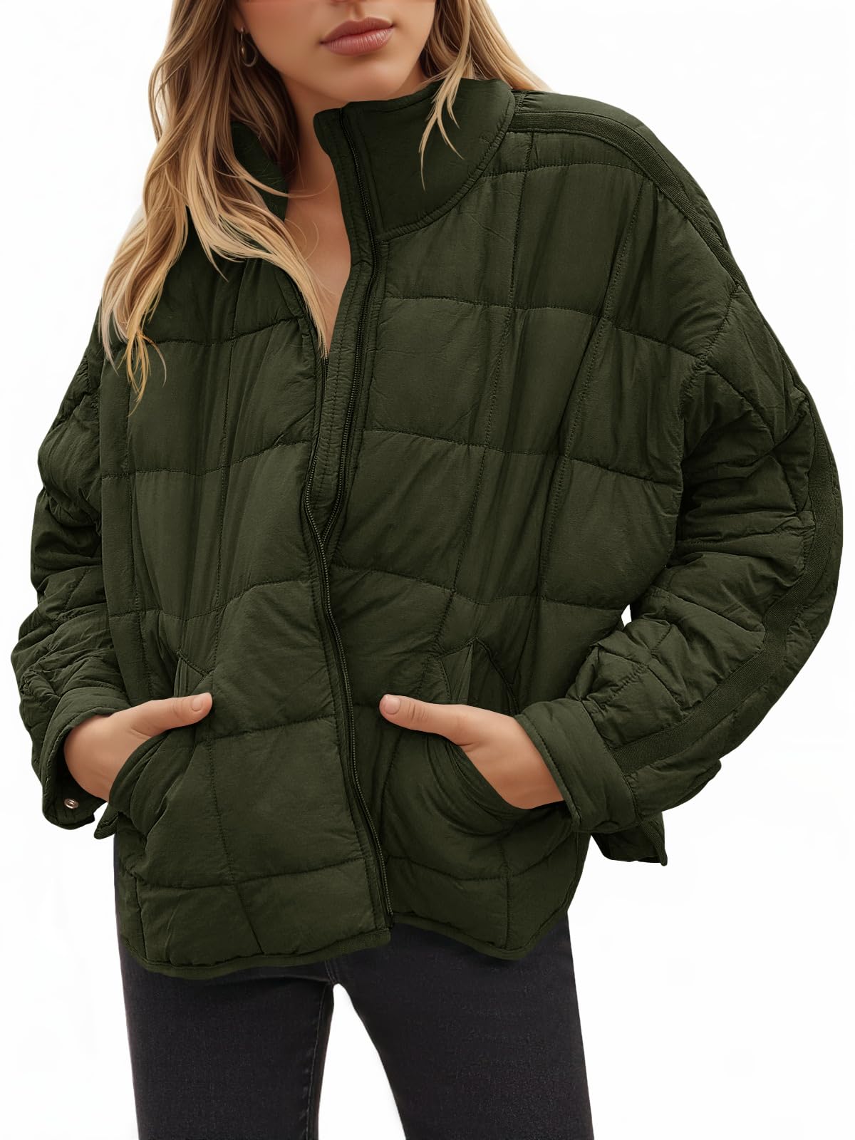 Aiopr Women's Oversized Lightweight Down Coat Long Sleeve Zip Packable Short Puffer Jackets|Clothing