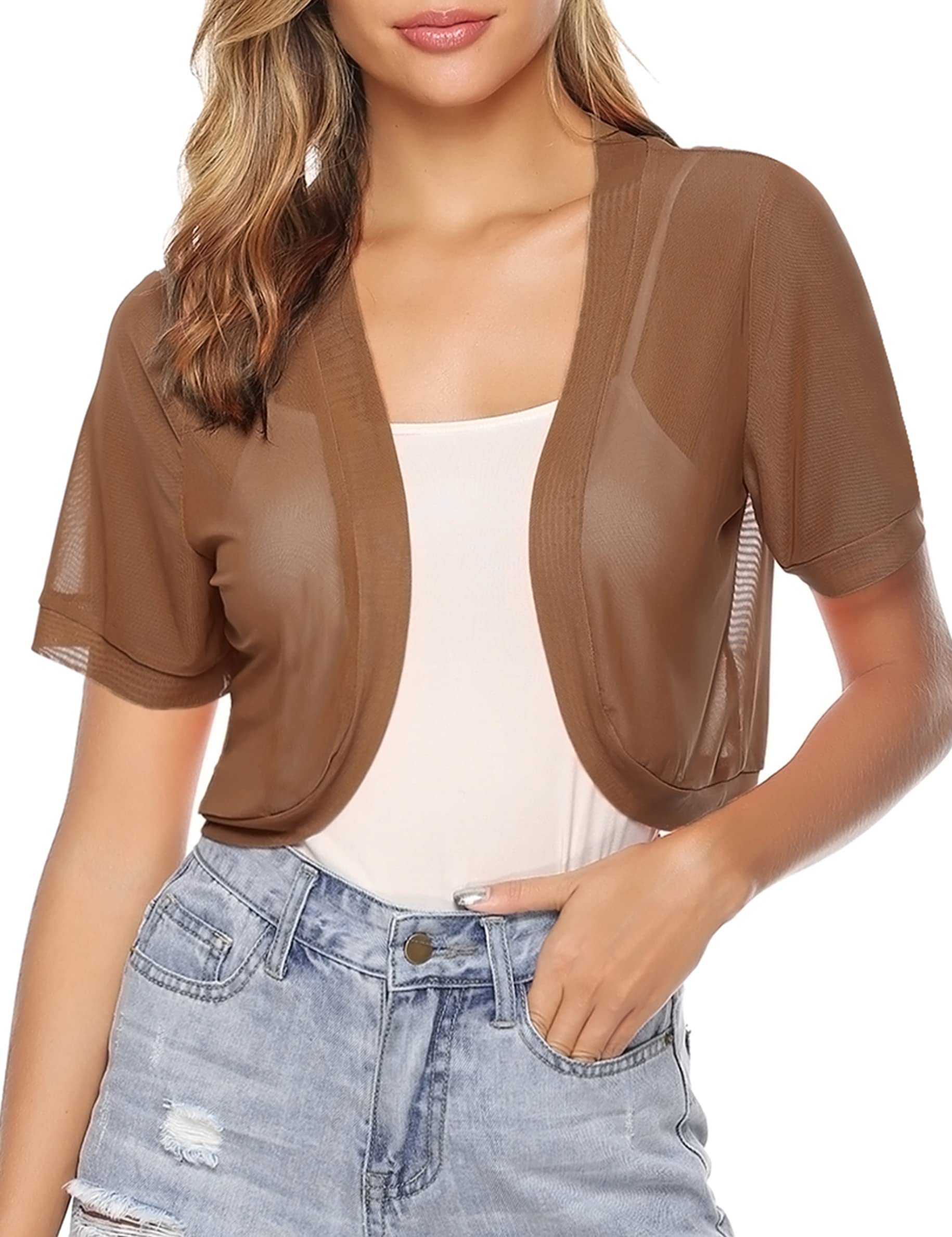Aiboria Women Shrug Open Front Mesh Cropped Bolero Short Sleeve Sheer Cardigan|Clothing