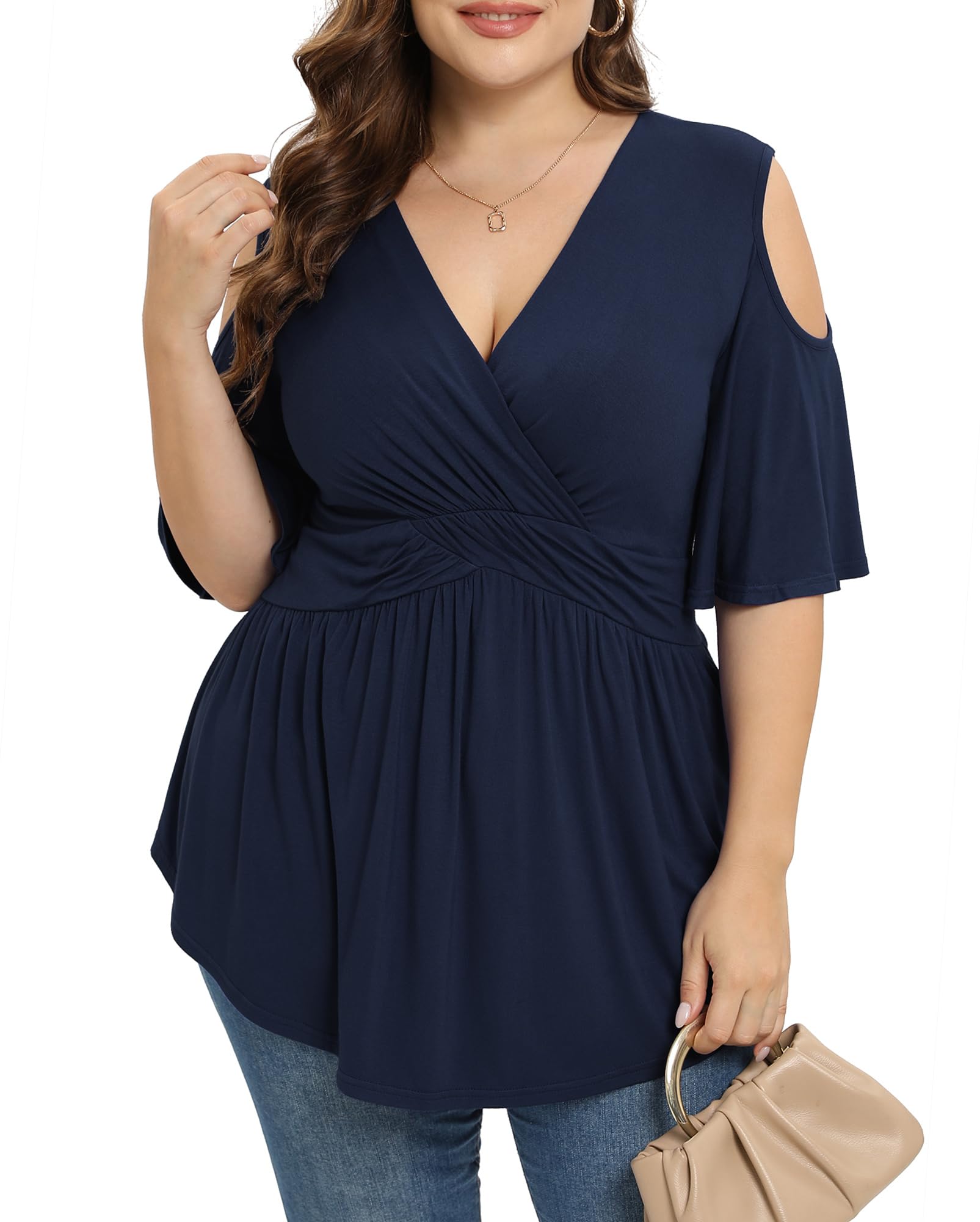 TIANZHU Plus Size Tops for Women Sexy Empire Waist Dressy Short Sleeve Shirts with Cold Shoulder Detail|Clothing