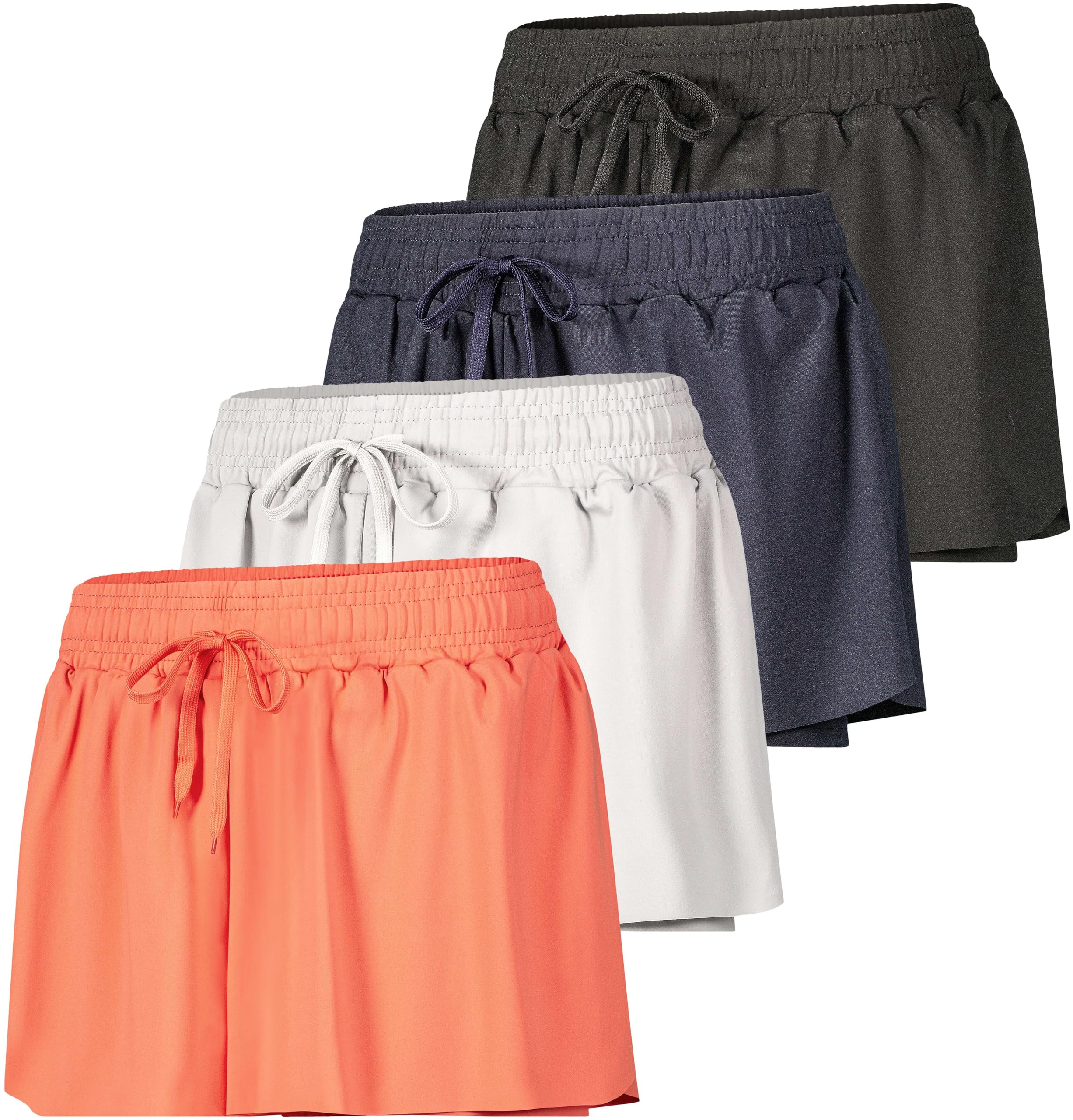 Real Essentials 4 Pack:Womens Flowy Dry Fit Running Short - Spandex Underneath Workout Summer Shorts (Available in Plus Size)|Clothing