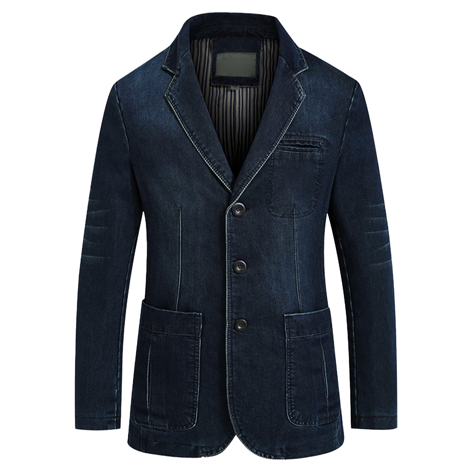 SWJGLITTR Men's Casual Denim Suit Jacket Classic Notched Collar 3 Button Jean Coat Vintage Skinny Pocket Blazer Outwear|Clothing