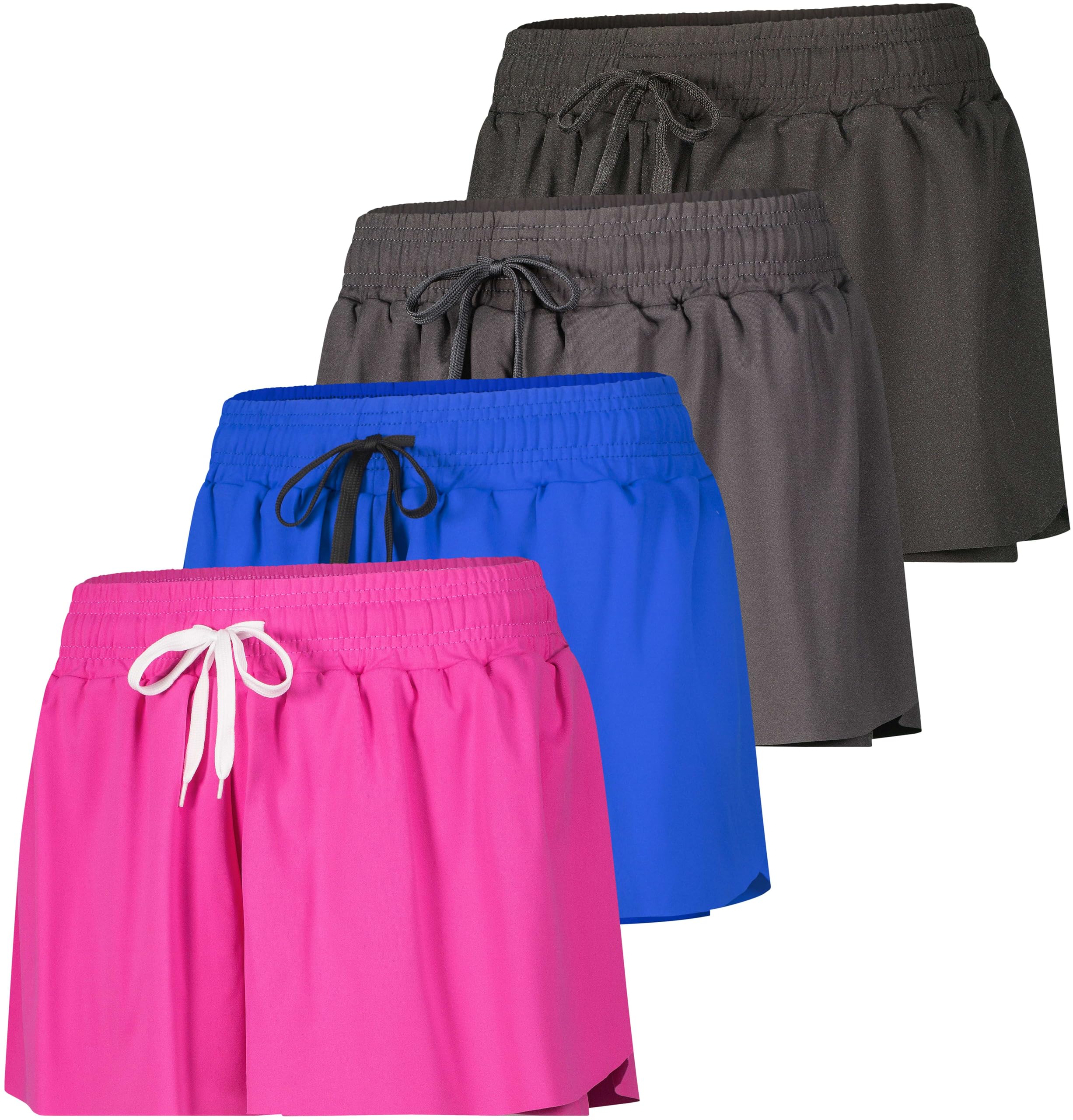Real Essentials 4 Pack:Womens Flowy Dry Fit Running Short - Spandex Underneath Workout Summer Shorts (Available in Plus Size)|Clothing