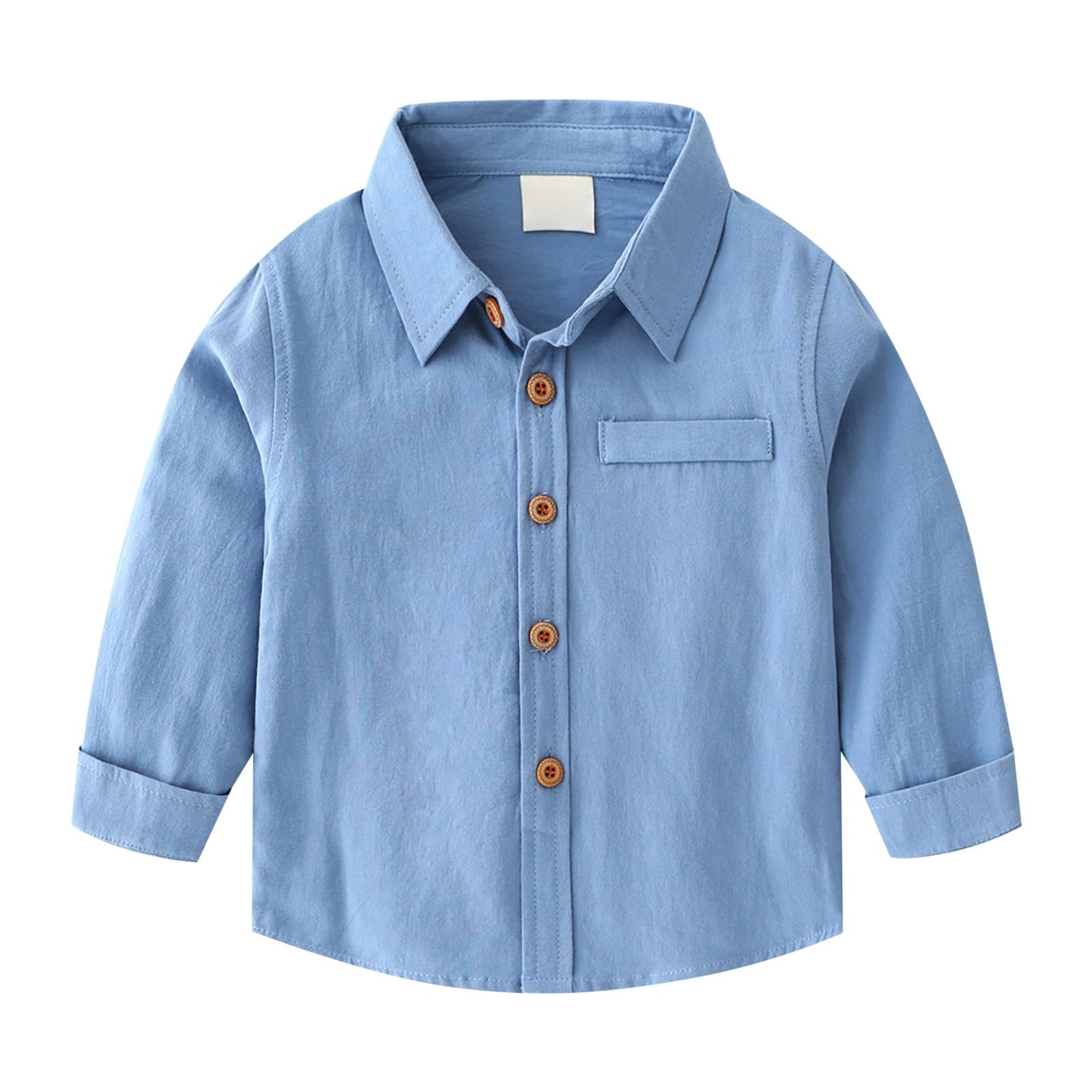 Toddler Boys Button Up Pocket Cotton Shirt Tops Kids Comfort Trendy Long Sleeve Blouse Dress Shirts Fall Winter Tees|Clothing