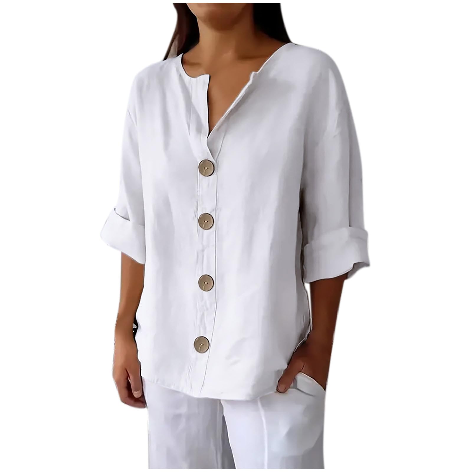 Women's Shirts Button Down Long Sleeve Button Down Cotton Linen V Neck Blouses Plus Size Loose Blouse Tunic|Clothing