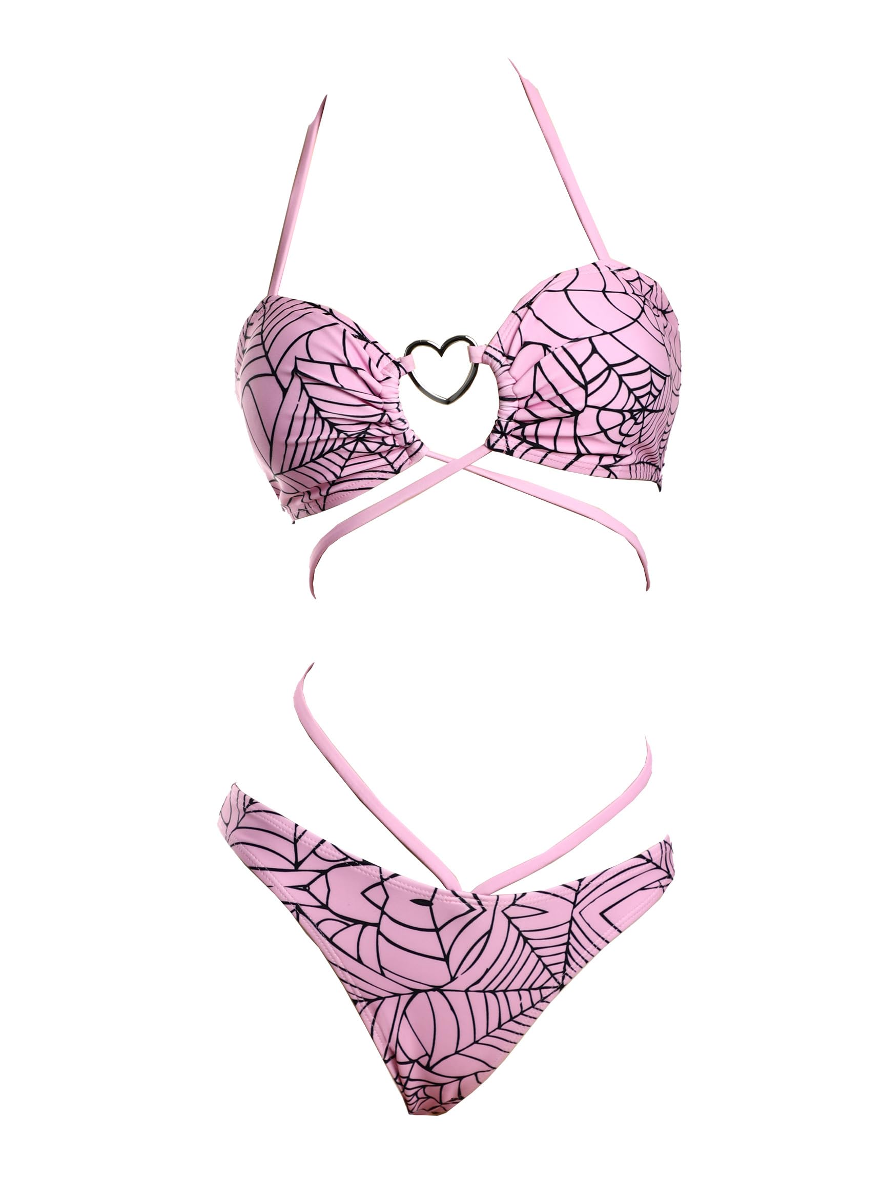 MEOWCOS Goth Bikini Swimsuit Gothic Pink Spider Web Print Bathing Suit Dark Style Goth Swimsuit|Clothing