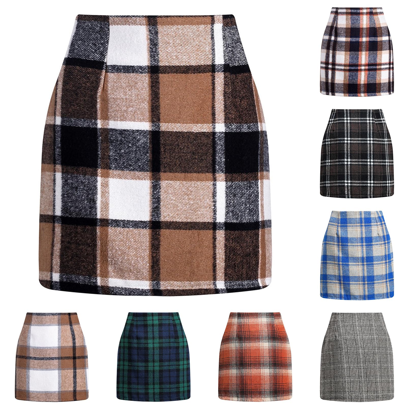 Plaid Skirts for Women Fall High Waisted Wool Christmas Skirts Sexy Tight Bodycon Tartan Flannel Mini Pencil Skirt|Clothing