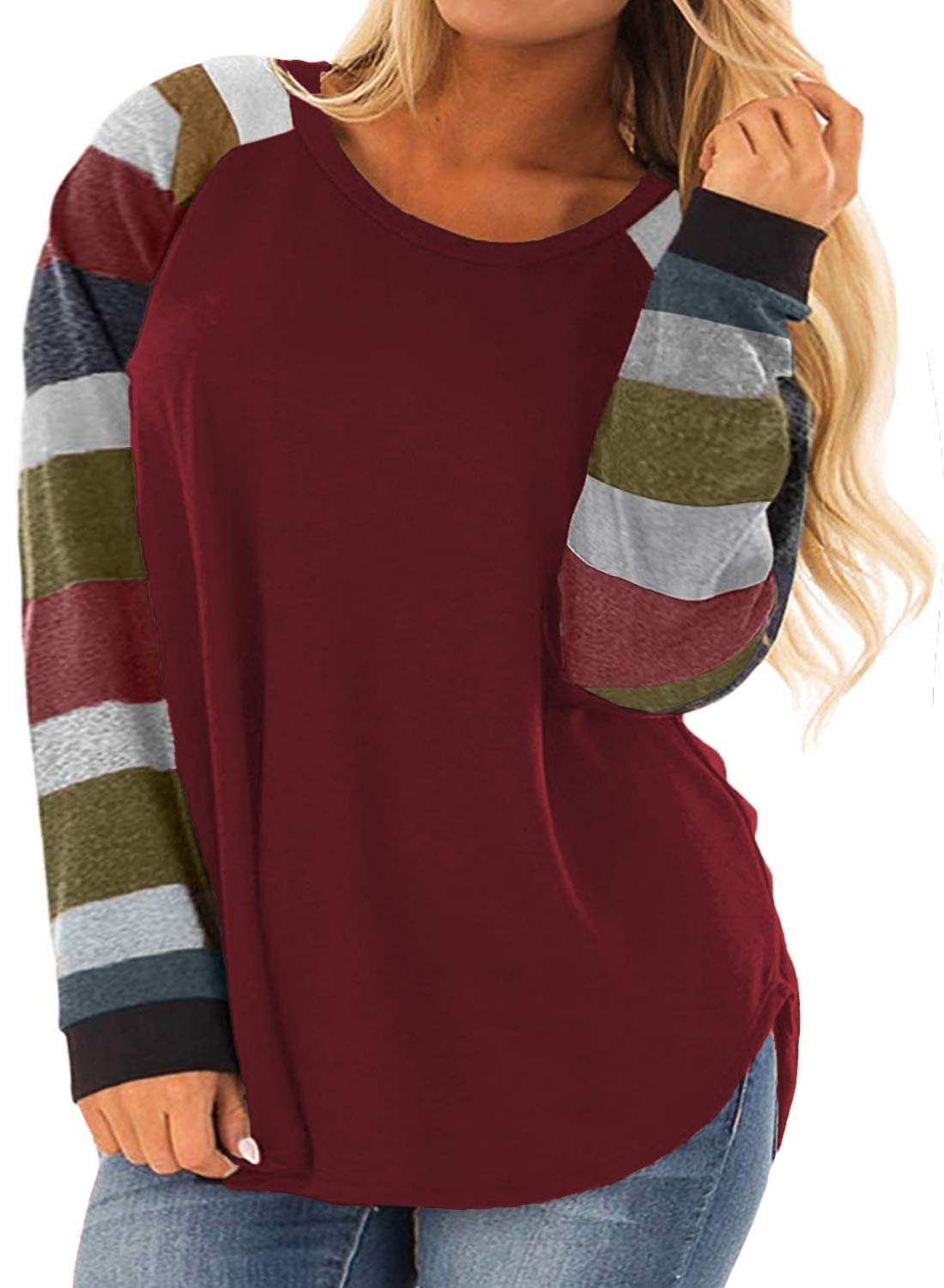ROSRISS Womens Plus Size Long Sleeve Tunic Crewneck Colorblock Striped Tee Shirt|Clothing