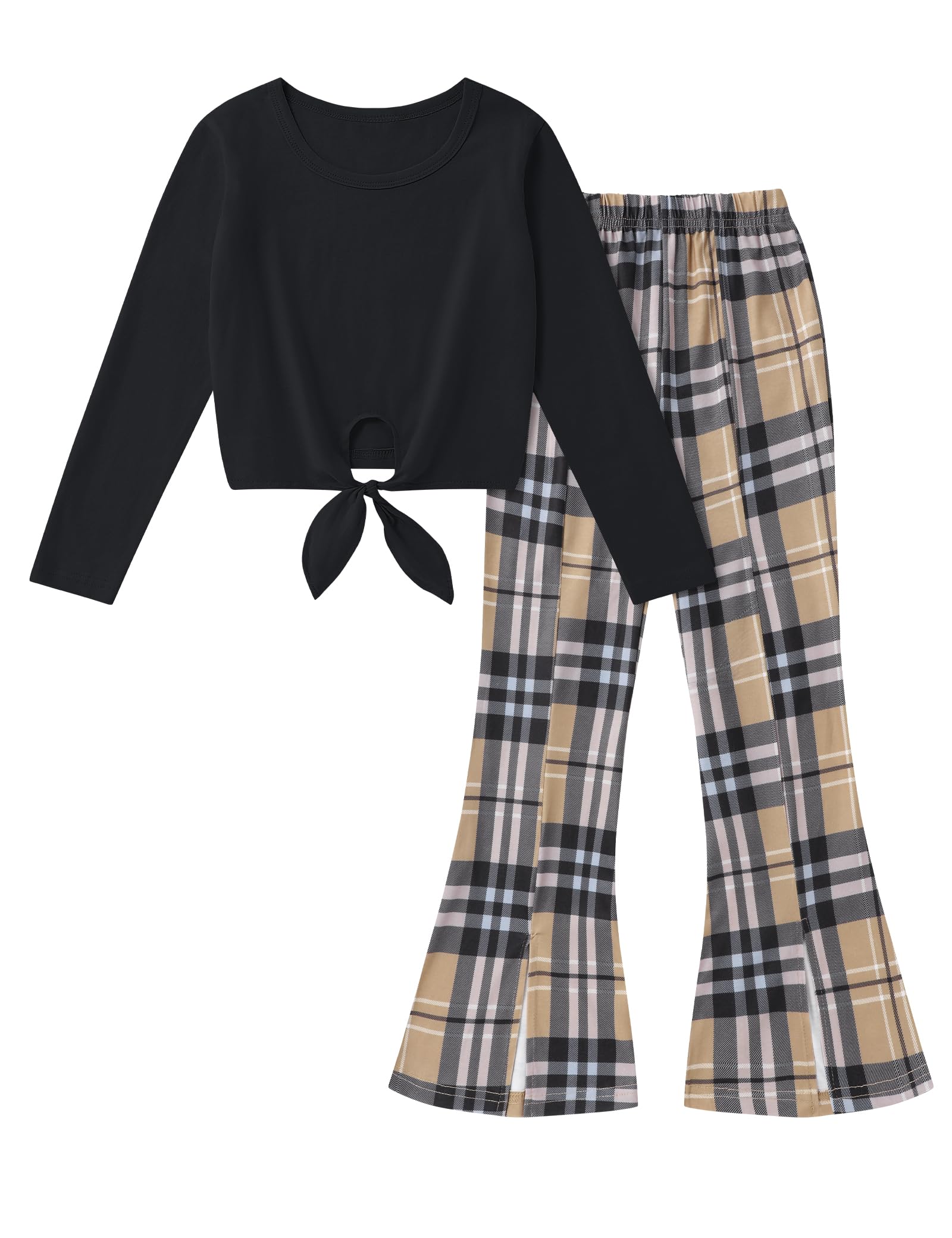 Gaupafmb Girl Clothes Solid Knot Front Long Sleeve Pure T-Shirt Tops Split Flare Pants 2Pcs Toddler Girl Outfit|Clothing