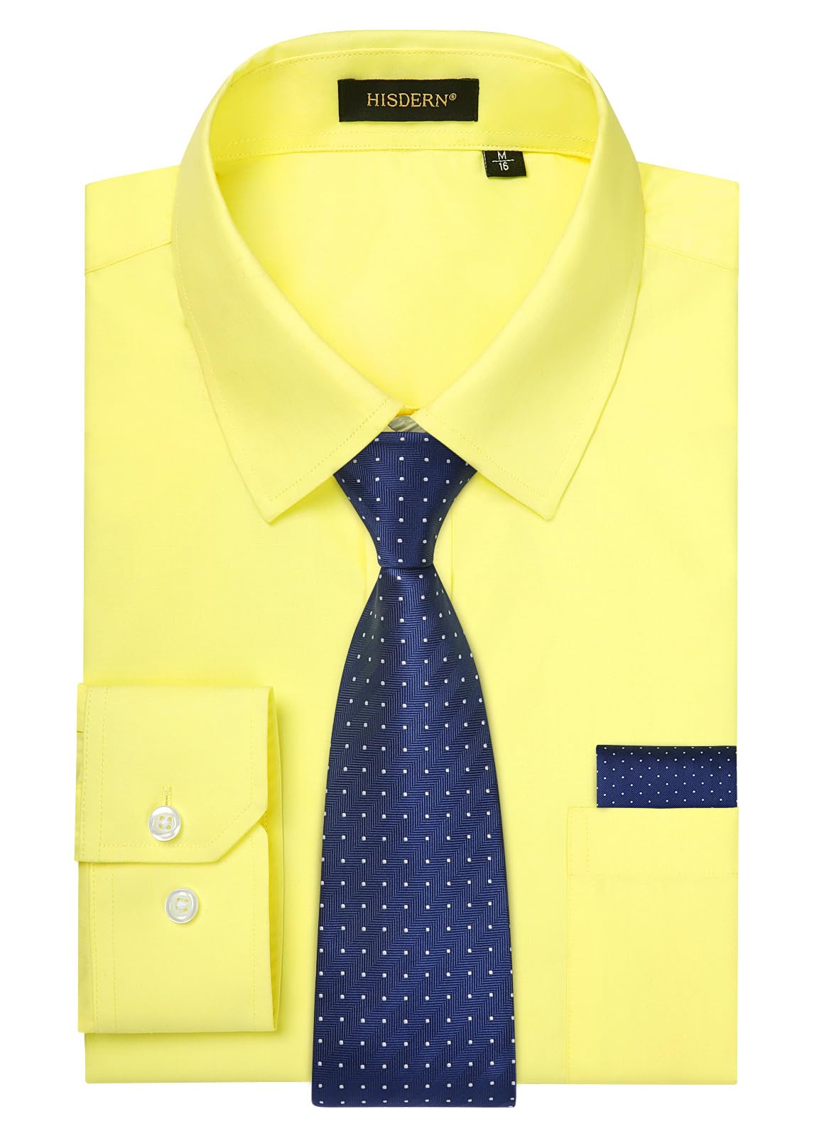 HISDERN Mens Dress Shirt with Tie Pocket Square Set Classic Button Down Shirt Matching Tie Long Sleeve Shirts|Clothing