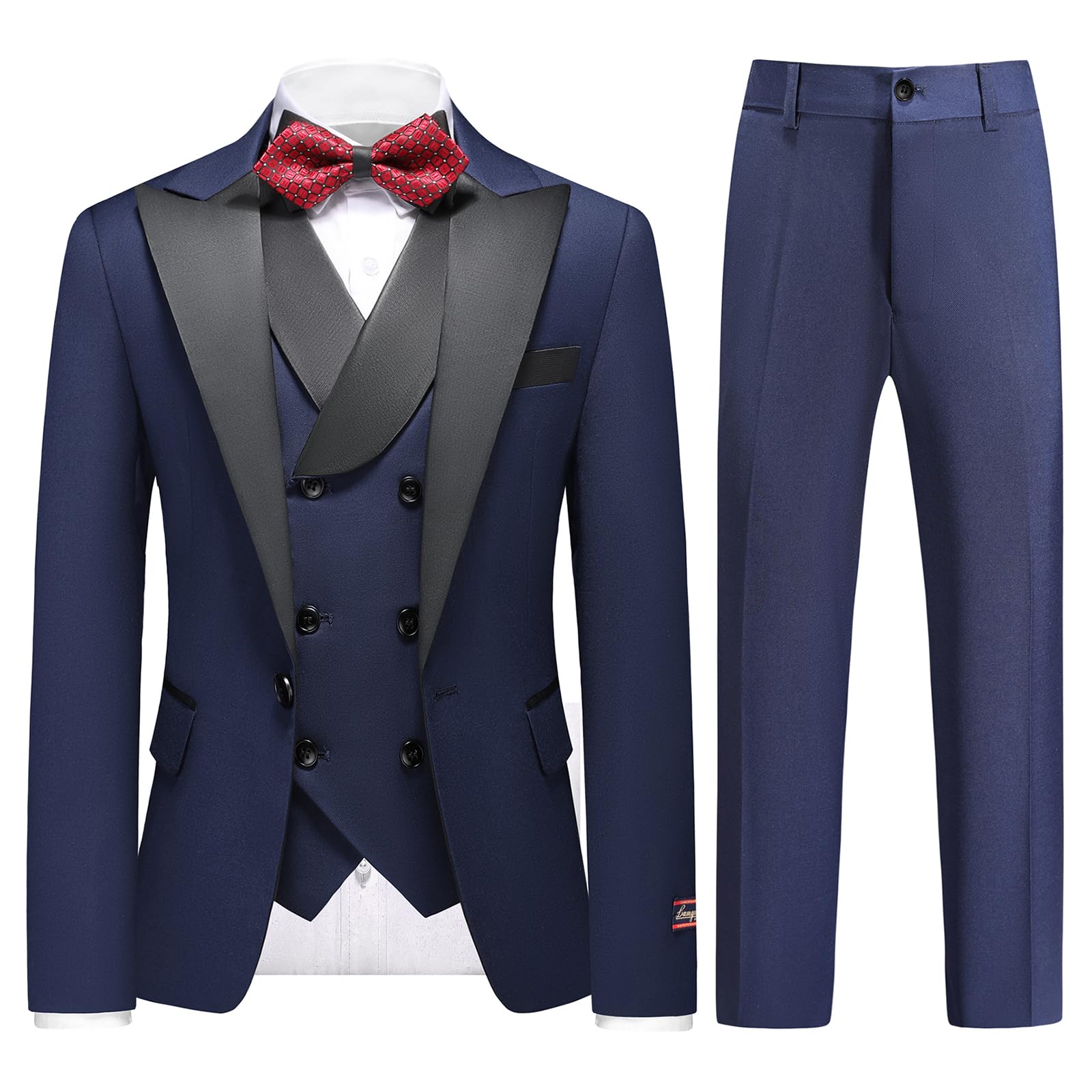 Lamgool Boys Tuxedo Suit 3 Piece Slim Fit Set with Blazer Jacket Vest Pant Kids Formal Outfit for Wedding Prom Size 6-20|Clothing