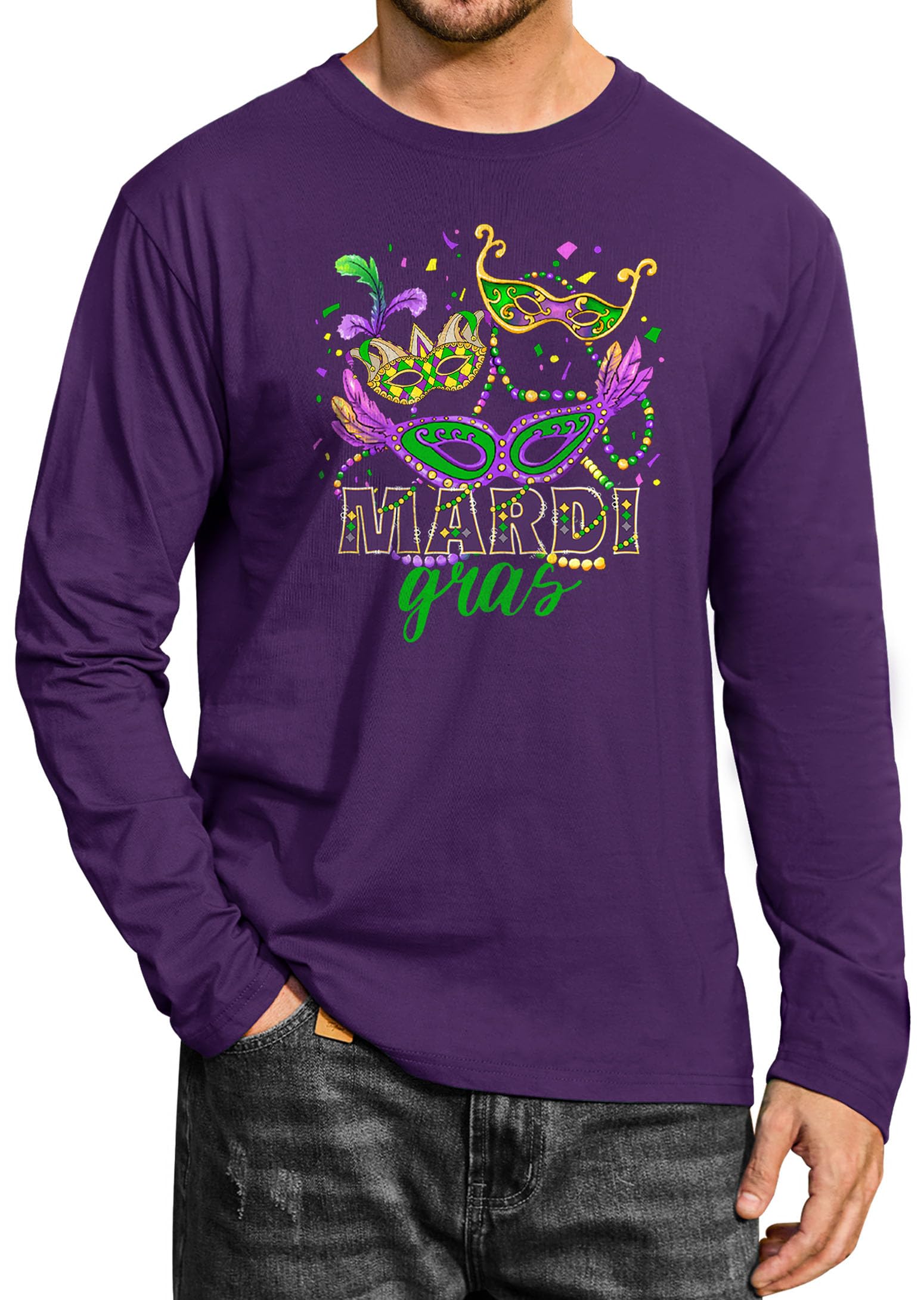 Arvilhill Mens Mardi Gras Shirts Long Sleeve Crewneck Classic Carnival Print T-Shirt (S-3XL)|Clothing