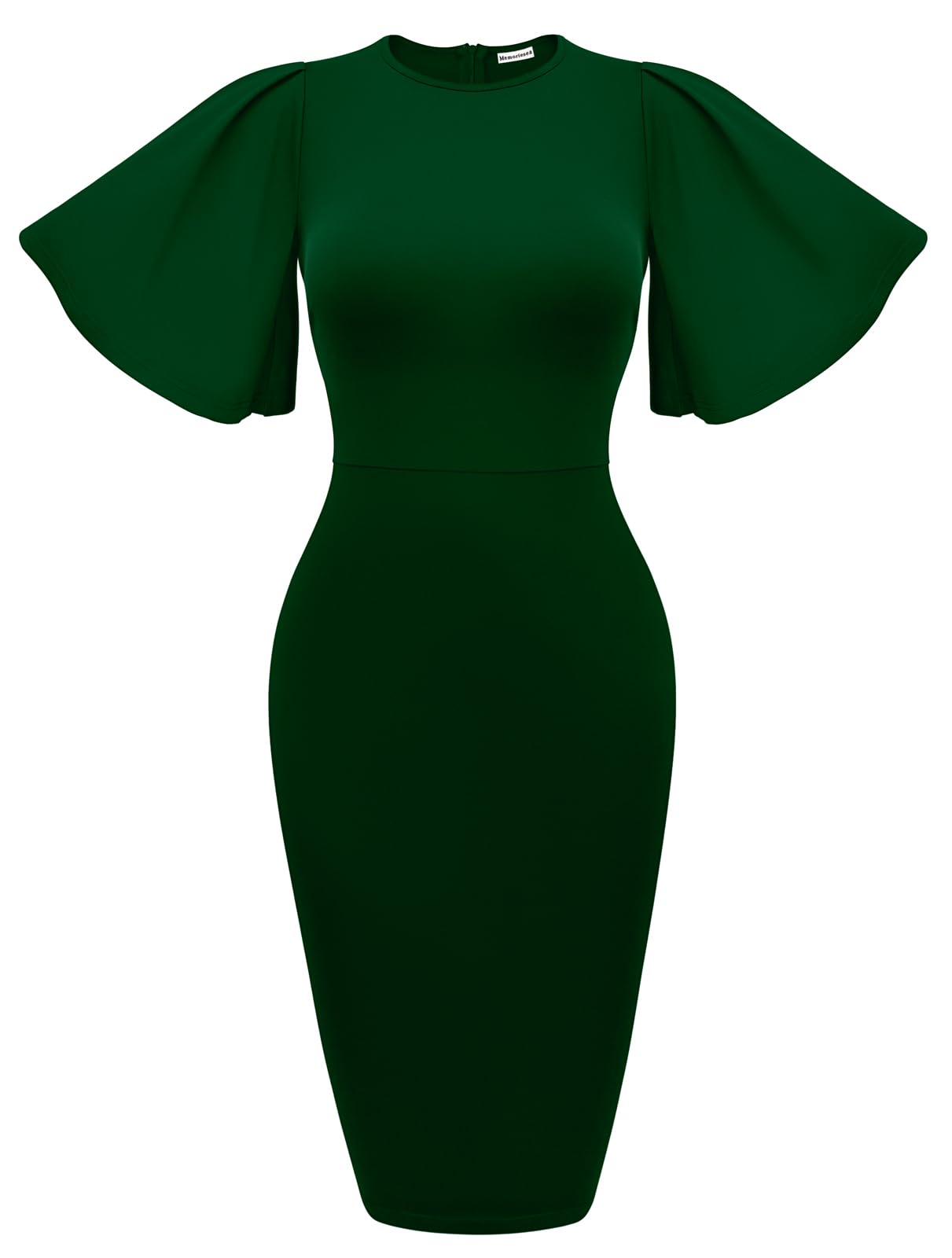 Memoriesea Women's Basic Bodycon Ruffle Flared Short Sleeve Pencil Midi Dress|Clothing