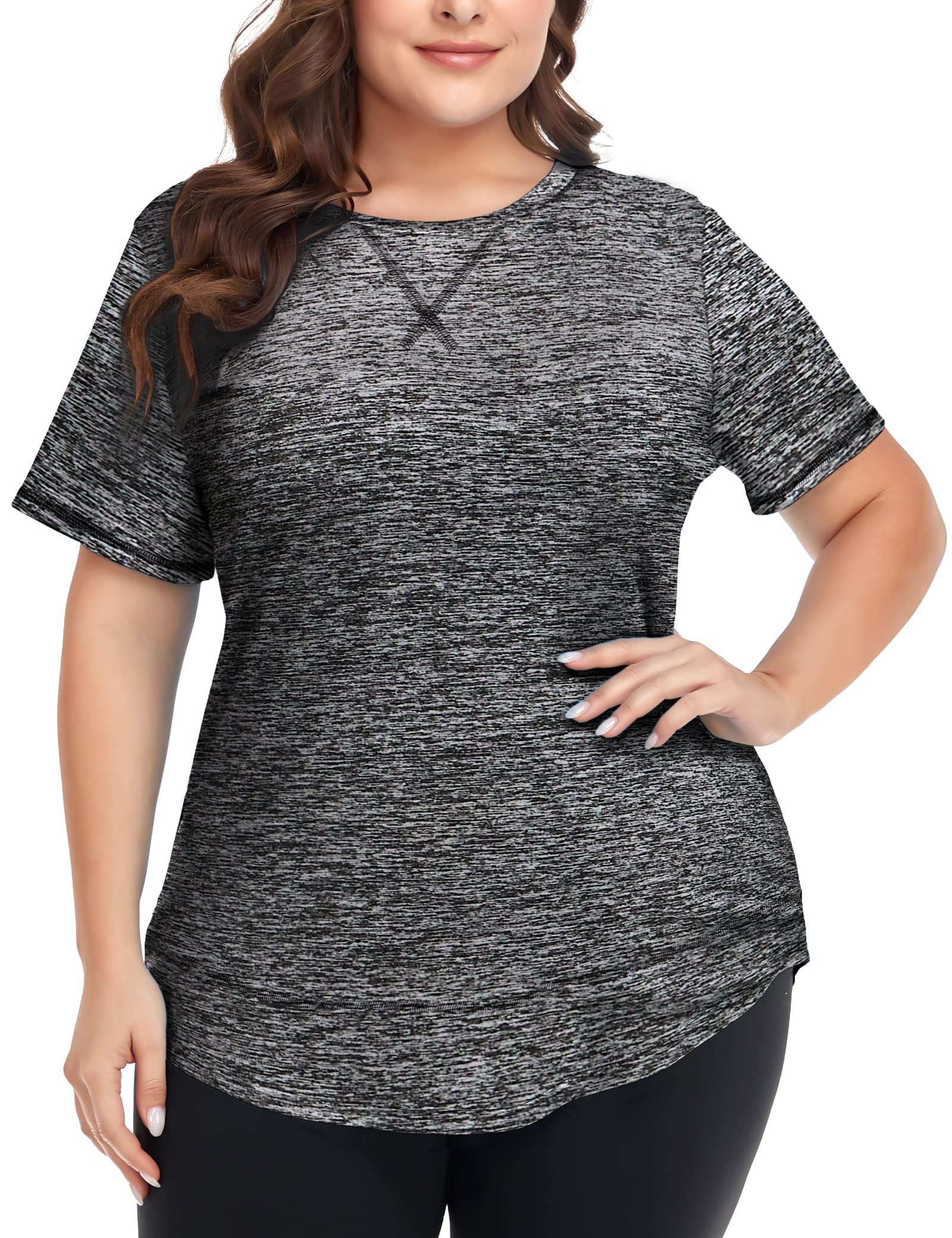 COOTRY Plus Size Workout Tops for Women Short Sleeve Loose fit Shirts Athletic Gym Yoga Clothing|Clothing