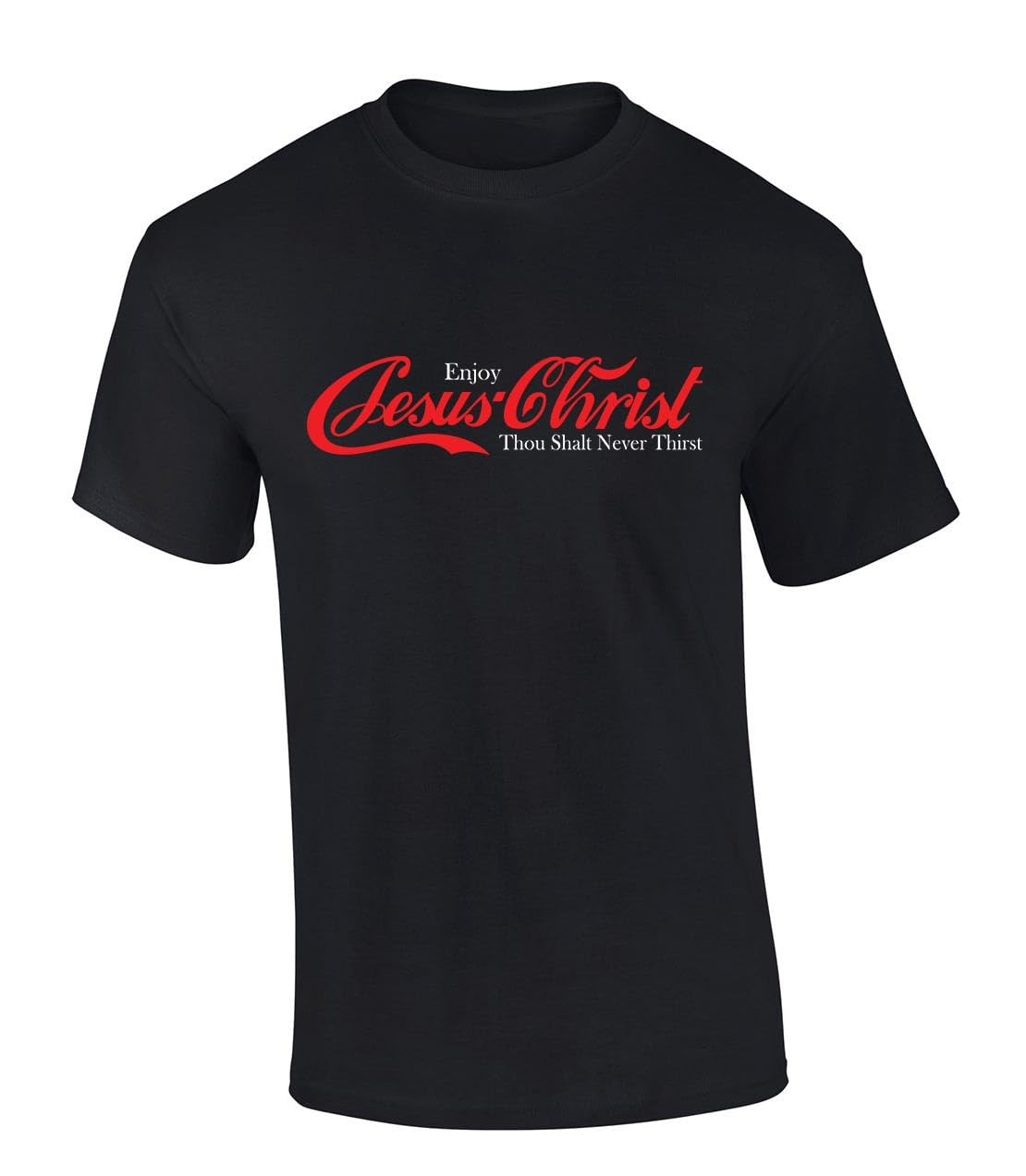 Mens Christian Tshirt Enjoy Jesus Christ Soda Logo Parody Short Sleeve T-Shirt-Black-Medium|Clothing