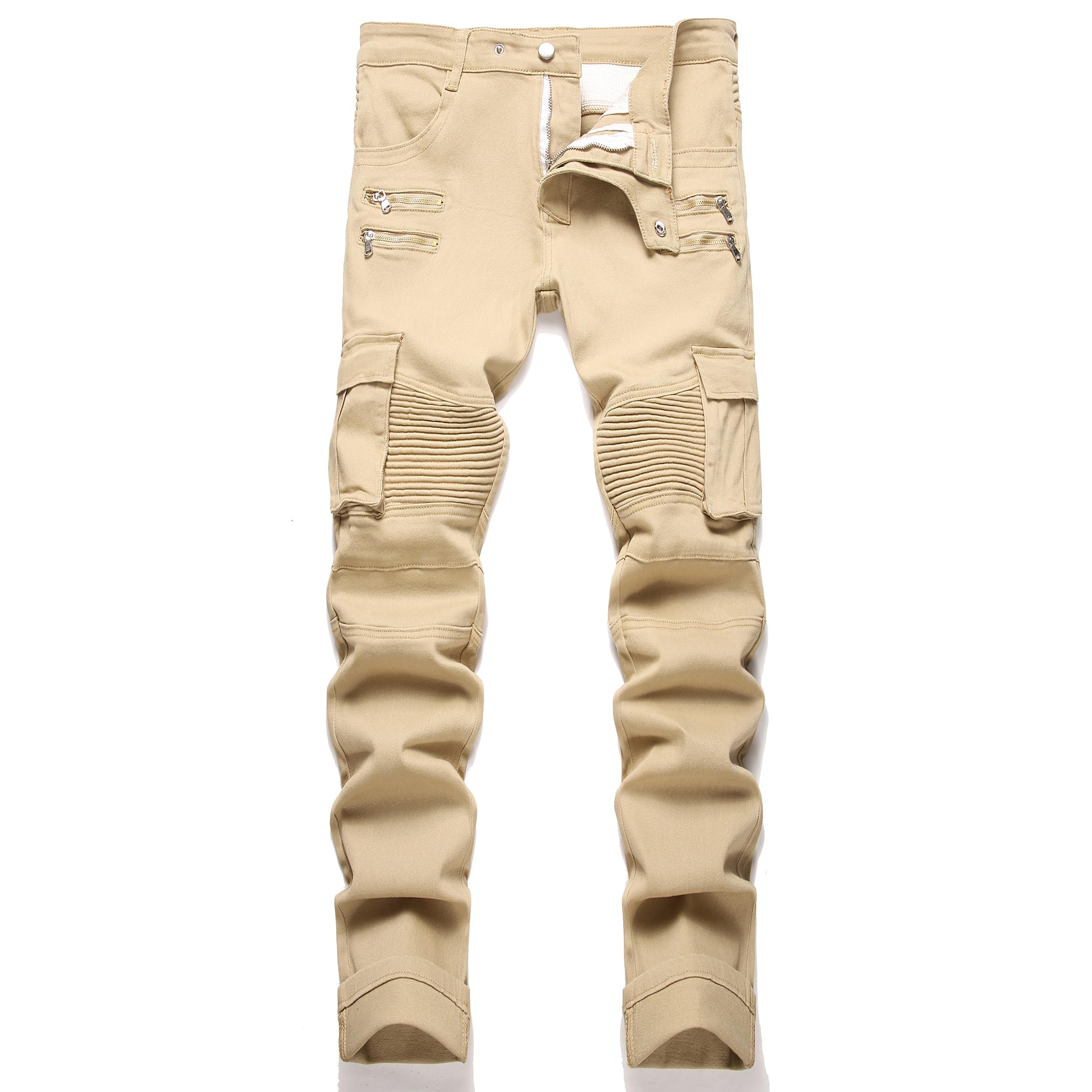 AITITIA Men's Biker Zipper Deco Washed Straight Fit Jeans|Clothing