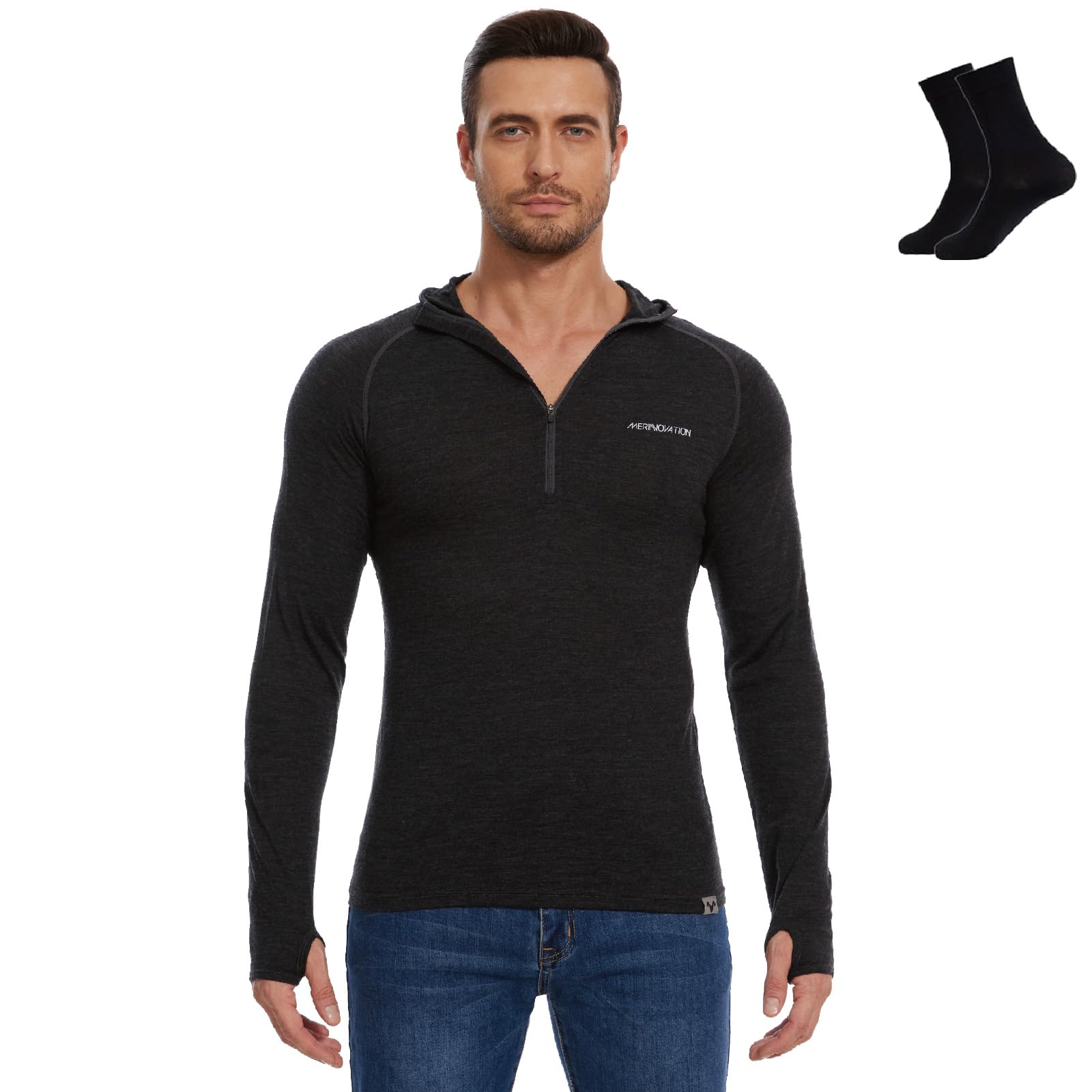 MERINNOVATION 100% Merino Wool Hoodie Men - Lightweight Base Layer Mens Thermal Long Sleeve Half Zip Sweatshirt for Hiking|Clothing