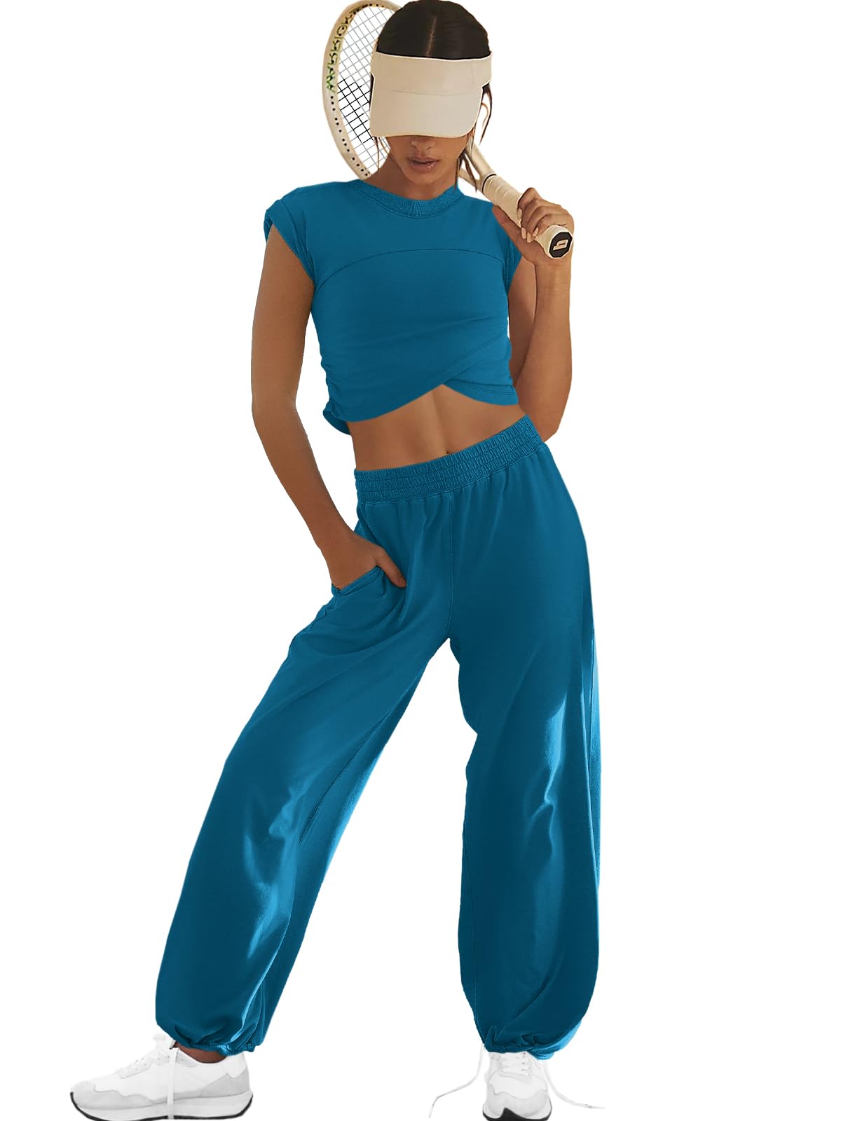 LAMISSCHE Womens Loungewear Set 2 Piece Outfits Sets Cropped Tops and Wide Leg Pants with Pockets Tracksuit|Clothing