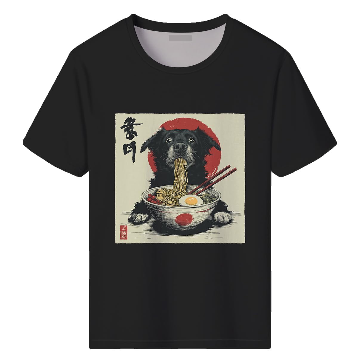 Girren Mens Funny Dog T-Shirts Japanese Anime Dog Ramen Kawaii Poster Art T-Shirt Summer Casual Tee Top|Clothing