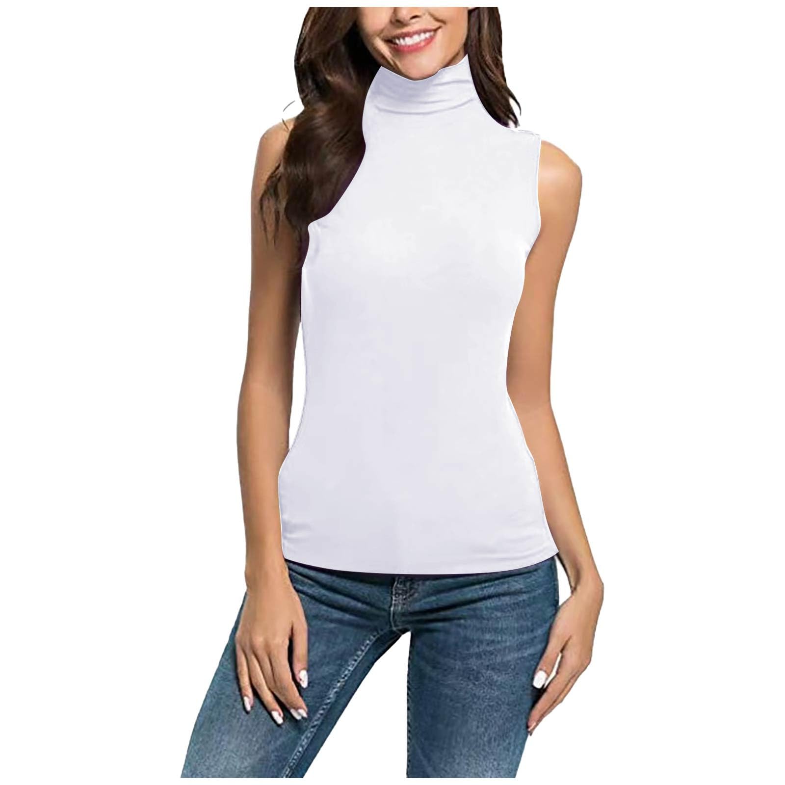 TANGNADE Sleeveless Turtlenecks for Women Tunic Plus Size Mock Neck Soft Tank Tops Basic Stretch Slim Fit Undershirts|Clothing